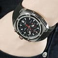 CERTINA C023.739.27.051.00 DS Eagle Quartz Chronograph - мужские кварцевые наручные часы. Корпус этих часов крупного размера (46 мм) и выполнен из нержавеющей стали L316с PVD-покрытием черного цвета. Модель CERTINA C023.739.27.051.00 DS Eagle Quartz Chronograph имеет устойчивое к царапинам сапфировое стекло, ремешок из натурального каучука черного цвета, черный циферблат. Калибр механизма: ETA G10.961. Класс водозащиты: 200 м / 20 АТМ (разрешается нырять с аквалангом на глубину). Дополнительные функции и особенности: отображение числа, второе время (GMT), хронограф (секундомер), тахиметр. Полная заводская комплектация CERTINA: оригинальные часы, фирменная коробка, инструкция, сервисная книжка, кассовый и товарный чеки. Международная гарантия 2 года. Производство и сборка: Швейцария