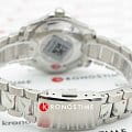 Компактный циферблат дополнен необычным узором в виде волн с блестящими акцентами, что стало выражением любви бренда Certina к морской стихии. Изящный аксессуар внутри просто «кремень», чему способствует система DS ConceptDS ConceptDouble Security Concept, обозначает двойную надёжность и безупречную точность часов Certina. Двойная система защиты подразумевает обеспечение максимальной устойчивости к ударам и высоких показателей водонепроницаемости.: водонепроницаемость 300 метров, завинчивающаяся задняя крышка и заводная головка с системой блокировки, сапфировое стекло, хирургическая сталь 316L. Швейцарский кварцевый механизм ETA F04.411 Precidrive™Precidrive™Инновационный кварцевый механизм Certina. Часы, оснащённые этим швейцарским калибром, приравниваются к точности к сертифицированным хронометрам, точность хода составляет +/-10 секунд в год. отмечен сертификатом хронометра COSCСертификат COSCОфициальный сертификат, подтверждающий то, что часы ходят с особо высокой точностью. Для получения документа часы подвергаются тестовым испытаниям, разработанным швейцарским институтом тестирования хронометров COSC. Допустимая норма для механических часов -4/+6 секунд в день, для кварцевых моделей +/- 0,07 секунд в день. за безупречную точность хода. Вращающийся безельБезельВнешний ободок, закрепляющий стекло. В спортивных часах так называется поворотное кольцо с делениями на циферблате, выполняет роль таймера – замеряет отрезки времени на шкале. Неподвижный безель – элемент декора. Однонаправленно вращающийся безель на дайверских часах позволяет фиксировать моменты погружения и выныривания на поверхность.. Яркая люминесцентная подсветкаЛюминесцентное покрытиеПозволяет считывать показания времени в темноте. Производители наносят на стрелки, часовые индексы, безель или поверхность циферблата светонакопительный состав, дающий холодное свечение.. Апертура даты, функция EOLEOLПредставляет собой систему, уведомляющую владельца часов о необходимости замены элемента питания. За 2 недели до полного разряда батарейки секундная стрелка перестаёт ходить чётко и начинает перепрыгивать на 3-4 деления.. Диаметр корпуса: 34 мм.