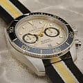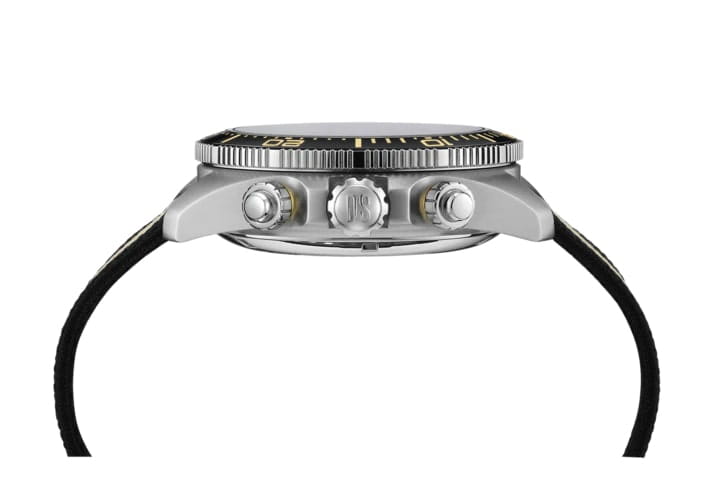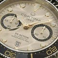 Коллекция DS Action открывает новые «глубины» часового искусства в прямом смысле этого слова: эти «морские» часы в стиле унисекс отличаются точностью, исключительной водостойкостью и динамичным дизайном – идеальный выбор для любой ситуации. Швейцарские мужские механические часы Certina DS Action Diver Chrono C032.827.18.271.00 из коллекции DS Action – безупречно точный и впечатляюще надёжный аксессуар. Габаритный хронографХронографФункция позволяет измерять отрезки времени с особой точностью: часы, минуты, секунды. Верным признаком хронографа является наличие на циферблате 3 дополнительных окошек-счётчиков. с бежевым циферблатом выгодно подчеркнёт повседневный или деловой образ. Модель соответствует стандарту ISO 6425 для дайверских часов и может похвастаться повышенной водостойкостью до 30 бар. Заводная головка, кнопки и задняя крышка завинчиваются для дополнительной герметичности. Аксессуар позволит вам чувствовать себя на высоте и в воде, и на суше. Сапфировое стеклоСапфировое стеклоПрочный и надёжный материал из кристалла сапфира синтетического происхождения, характеризующийся особой твёрдостью и устойчивостью к царапинам и повреждениям. с двухсторонней антибликовой обработкой. Керамический вращающийся безельБезельВнешний ободок, закрепляющий стекло. В спортивных часах так называется поворотное кольцо с делениями на циферблате, выполняет роль таймера – замеряет отрезки времени на шкале. Неподвижный безель – элемент декора. Однонаправленно вращающийся безель на дайверских часах позволяет фиксировать моменты погружения и выныривания на поверхность.. Корпус из нержавеющей стали 316L. Люминесцентная подсветкаЛюминесцентное покрытиеПозволяет считывать показания времени в темноте. Производители наносят на стрелки, часовые индексы, безель или поверхность циферблата светонакопительный состав, дающий холодное свечение.. Календарь, секундомер. Тканевый ремешок. Диаметр корпуса: 44,6 мм. Производство и сборка: Швейцария.