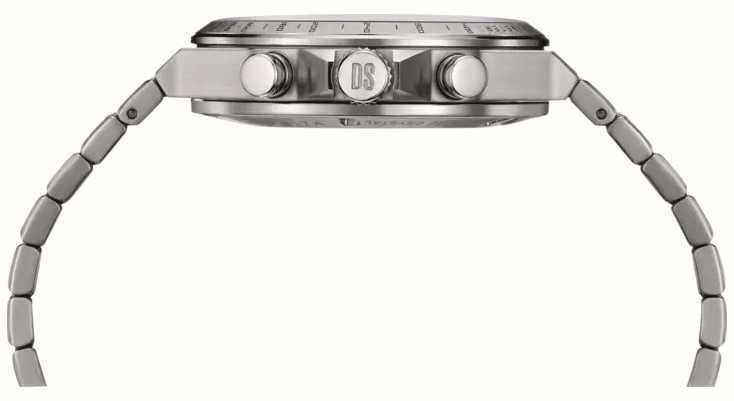 Certina DS-7 Chronograph ХронографФункция позволяет измерять отрезки времени с особой точностью: часы, минуты, секунды. Верным признаком хронографа является наличие на циферблате 3 дополнительных окошек-счётчиков. C043.417.44.041.00– мужские часы для поклонников ярких аксессуаров. И корпус, и браслет изготовлены из высококачественного титанового сплава. Под твердым сапфировым стекломСапфировое стеклоПрочный и надёжный материал из кристалла сапфира синтетического происхождения, характеризующийся особой твёрдостью и устойчивостью к царапинам и повреждениям. с антибликовым покрытиемАнтибликовое покрытиеСлой оксида металла в 0,13-0,3 микрон, благодаря которому стекло часов не бликует и не отражает свет. Антибликовое покрытие уменьшает отражение света в 10 раз, обеспечивая отличную читаемость показателей циферблата. находится черный циферблат и на котором вы найдете окошко даты в положении 4 часа, а также маркировку, покрытую люминесцентным покрытиемЛюминесцентное покрытиеПозволяет считывать показания времени в темноте. Производители наносят на стрелки, часовые индексы, безель или поверхность циферблата светонакопительный состав, дающий холодное свечение. Super-LumiNova. Все это приводится в действие кварцевым механизмом Precidrive™Precidrive™Инновационный кварцевый механизм Certina. Часы, оснащённые этим швейцарским калибром, приравниваются к точности к сертифицированным хронометрам, точность хода составляет +/-10 секунд в год..611. Класс водозащиты: 100 метров, позволит плавать, нырять и заниматься другими водными видами спорта. Титановый браслет на застёжке-бабочке с кнопкамиЗастёжка "бабочка"Такой вид застёжки дополняется предохранителями, помогающими избежать случайного раскрытия браслета. Обладают изящным исполнением. .