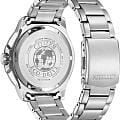 Часы Citizen AW1525-81L – это стильная и надежная модель японского производства, идеально подходящая для активного образа жизни. Корпус выполнен из высококачественной нержавеющей стали, в то время как на безельБезельВнешний ободок, закрепляющий стекло. В спортивных часах так называется поворотное кольцо с делениями на циферблате, выполняет роль таймера – замеряет отрезки времени на шкале. Неподвижный безель – элемент декора. Однонаправленно вращающийся безель на дайверских часах позволяет фиксировать моменты погружения и выныривания на поверхность. нанесено черное и синее PVD-покрытиеPVDУльтратонкое покрытие наносится в технике вакуумного напыления, сочетает в себе нитрид титана особой прочности со слоем золота или оксида хрома. Несёт в себе декоративную или защитную функцию., браслет также стальной. Синий циферблат украшен метками в виде штрихов и оснащен календарем с окошком даты. Защиту от повреждений обеспечивает прочное минеральное стеклоМинеральное стеклоМинеральное стекло представляет собой искусственно выращенный минерал кварца. Такое стекло отличается особой устойчивостью к повреждениям и царапинам. Уступает по некоторым качествам сапфировому стеклу., а водонепроницаемость до 100 метров позволяет не снимать часы во время плавания и занятий спортом. Внутри установлен надежный кварцевый механизм Citizen J810 с инновационной системой Eco-Drive, которая питается от солнечной энергии и не требует замены батарейки, обеспечивая запас хода до 240 дней. Стрелки и часовые метки с люминесцентным покрытиемЛюминесцентное покрытиеПозволяет считывать показания времени в темноте. Производители наносят на стрелки, часовые индексы, безель или поверхность циферблата светонакопительный состав, дающий холодное свечение. обеспечивают отличную читаемость даже в темноте. Функция индикации заряда EOLEOLПредставляет собой систему, уведомляющую владельца часов о необходимости замены элемента питания. За 2 недели до полного разряда батарейки секундная стрелка перестаёт ходить чётко и начинает перепрыгивать на 3-4 деления. подскажет, когда потребуется подзарядка. Корпус диаметром 45,9 мм, толщина 11,8 мм, ширина браслета 22 мм, вес модели составляет 160 граммов. Завинчивающаяся задняя крышка украшена фирменной гравировкой Eco-Drive, а заводная головка оснащена защитой. Надежная раскладная застёжкаРаскладная застёжкаТакой тип застёжки используется только на браслетах из металла. Она никогда не раскрывается полностью, происходит разделение на 2 и более частей. Раскладывающая застёжка снизит вероятность потери часов к минимуму. браслета с системой блокировки гарантирует комфортное и безопасное ношение.