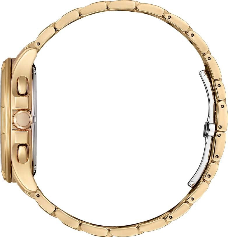 Часы Citizen BL8163-50X сочетают в себе передовые технологии и элегантный дизайн, идеально подходя для современного делового мужчины. Корпус и браслет выполнены из прочной нержавеющей стали с розово-золотистым IP-покрытиемIP-покрытиеМетод ионного напыления. Демонстрирует повышенную устойчивость к истиранию, окислению и химическим веществам. Под воздействием высокого давления и температуры около 1500°C молекулы металла надёжно соединяются с частицами корпуса часов., а коричневый циферблат украшен метками в виде штрихов, к тому же стрелки и метки с люминесцентным покрытиемЛюминесцентное покрытиеПозволяет считывать показания времени в темноте. Производители наносят на стрелки, часовые индексы, безель или поверхность циферблата светонакопительный состав, дающий холодное свечение., что обеспечивает отличную читаемость в любое время суток. Модель оснащена инновационной системой Eco-Drive, которая работает на солнечной энергии и не требует замены батарейки, а запас хода составляет до 210 дней, при включенной функции энергосбережения — до 18 месяцев. Надежный кварцевый механизм Citizen E870 поддерживает функции вечного календаря с отображением числа, дня недели и месяца, а также индикацию второго часового поясаВторой часовой поясФункция, позволяющая отображать время двух часовых поясов одновременно. и будильникБудильникБуди́льник — часы, в заданный момент времени подающие звуковой, световой и/или в редких случаях другой сигнал.. Окошко даты расположено в положении 4 часа, ретроградный указатель дня недели вынесен на отдельный циферблат, а месяц отображается центральной стрелкой. Для дополнительного удобства предусмотрены 12- и 24-часовой форматы времени, функция индикации заряда EOLEOLПредставляет собой систему, уведомляющую владельца часов о необходимости замены элемента питания. За 2 недели до полного разряда батарейки секундная стрелка перестаёт ходить чётко и начинает перепрыгивать на 3-4 деления. и система предотвращения перезарядки. Заводная головка снабжена защитой, а браслет оснащен раскладной застёжкойРаскладная застёжкаТакой тип застёжки используется только на браслетах из металла. Она никогда не раскрывается полностью, происходит разделение на 2 и более частей. Раскладывающая застёжка снизит вероятность потери часов к минимуму., обеспечивая надежную фиксацию на руке. Сапфировое стеклоСапфировое стеклоПрочный и надёжный материал из кристалла сапфира синтетического происхождения, характеризующийся особой твёрдостью и устойчивостью к царапинам и повреждениям. эффективно защищает циферблат от царапин, а водозащита 100WR позволяет использовать часы даже во время плавания. Диаметр корпуса составляет 42 мм, толщина — 11,1 мм, что делает модель стильной и удобной для ежедневного ношения.