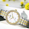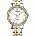 Часы Citizen EL3104-54D представляют собой элегантную модель, выполненную в Японии, сочетающую в себе современные технологии и утончённый дизайн. Корпус изготовлен из прочной нержавеющей стали, что обеспечивает долговечность и привлекательный внешний вид. Диаметр корпуса составляет 31 мм, а толщина — всего 7 мм, что делает часы изящными и аккуратными на запястье. Особое внимание привлекает безельБезельВнешний ободок, закрепляющий стекло. В спортивных часах так называется поворотное кольцо с делениями на циферблате, выполняет роль таймера – замеряет отрезки времени на шкале. Неподвижный безель – элемент декора. Однонаправленно вращающийся безель на дайверских часах позволяет фиксировать моменты погружения и выныривания на поверхность. с золотистым IP-покрытиемIP-покрытиеМетод ионного напыления. Демонстрирует повышенную устойчивость к истиранию, окислению и химическим веществам. Под воздействием высокого давления и температуры около 1500°C молекулы металла надёжно соединяются с частицами корпуса часов., украшенный мерцающими кристаллами, которые придают часам особый шарм и изысканность. Надёжный кварцевый механизм гарантирует точность хода, а водозащита уровня WR 50 позволяет не снимать часы при мытье рук или во время дождя. Перламутровый циферблат украшен часовыми индексами в виде точек и цифр, а также оснащён центральными стрелками часов, минут и секунд для удобного считывания времени и кристаллами. Минеральное стеклоМинеральное стеклоМинеральное стекло представляет собой искусственно выращенный минерал кварца. Такое стекло отличается особой устойчивостью к повреждениям и царапинам. Уступает по некоторым качествам сапфировому стеклу. устойчиво к появлению мелких царапин, сохраняя прозрачность и презентабельный вид. Стальной браслет с частичным золотистым IP-покрытиемIP-покрытиеМетод ионного напыления. Демонстрирует повышенную устойчивость к истиранию, окислению и химическим веществам. Под воздействием высокого давления и температуры около 1500°C молекулы металла надёжно соединяются с частицами корпуса часов. и раскладной застёжкойРаскладная застёжкаТакой тип застёжки используется только на браслетах из металла. Она никогда не раскрывается полностью, происходит разделение на 2 и более частей. Раскладывающая застёжка снизит вероятность потери часов к минимуму. надежно фиксирует часы на запястье, обеспечивая комфорт при ежедневном ношении.