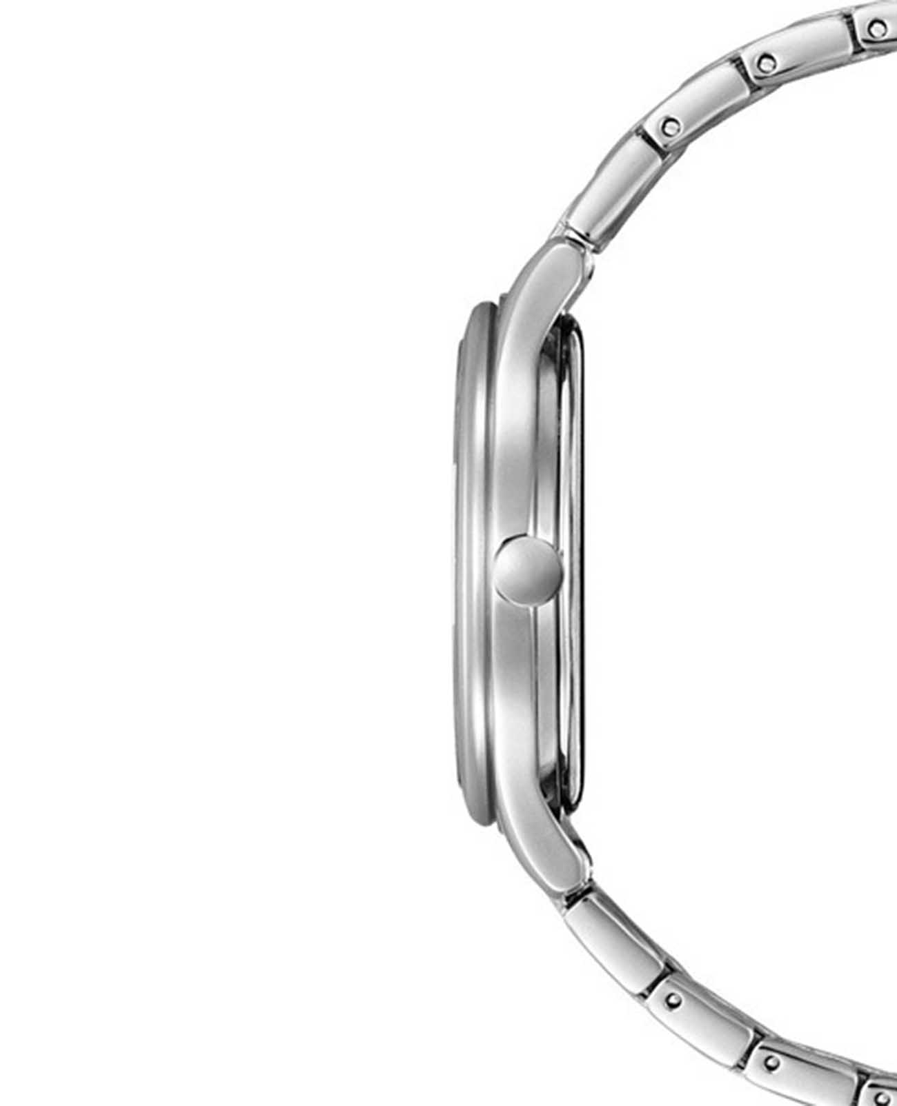 Часы Citizen EM0500-73A — это стильная модель, сочетающая в себе утонченную классику и современные технологии. Корпус и браслет изготовлены из прочной нержавеющей стали, что обеспечивает не только износостойкость, но и элегантный внешний вид. Белый циферблат отличается кристаллами и лаконичным оформлением и защищён надёжным минеральным стекломМинеральное стеклоМинеральное стекло представляет собой искусственно выращенный минерал кварца. Такое стекло отличается особой устойчивостью к повреждениям и царапинам. Уступает по некоторым качествам сапфировому стеклу., устойчивым к царапинам. Часы оснащены инновационной системой Eco-Drive, которая позволяет заряжаться от любого источника света и не требует замены батарейки, а запас энергии составляет до 180 дней. Механизм Citizen E031 гарантирует точность хода, а функция индикации заряда EOLEOLПредставляет собой систему, уведомляющую владельца часов о необходимости замены элемента питания. За 2 недели до полного разряда батарейки секундная стрелка перестаёт ходить чётко и начинает перепрыгивать на 3-4 деления. своевременно подскажет о необходимости подзарядки. Водозащита до 50 метров обеспечивает дополнительную практичность и защищает механизм от влаги при повседневном использовании. Браслет шириной 14 мм и длиной 143 мм удобно фиксируется на запястье с помощью раскладной застёжкиРаскладная застёжкаТакой тип застёжки используется только на браслетах из металла. Она никогда не раскрывается полностью, происходит разделение на 2 и более частей. Раскладывающая застёжка снизит вероятность потери часов к минимуму. с системой блокировки, что обеспечивает надёжность и комфорт в течение всего дня. Диаметр корпуса составляет 32 мм, а толщина — 7,6 мм, благодаря чему часы выглядят изящно и подходят для любого случая.