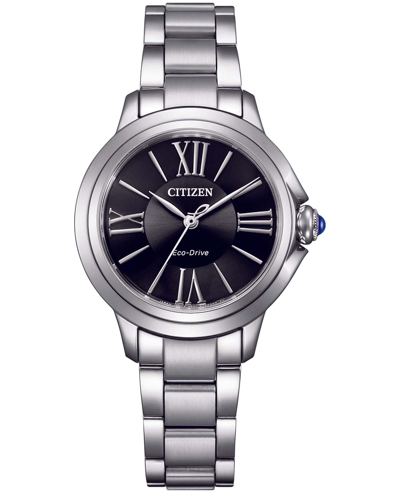 Часы Citizen EM1160-58E — это стильная модель, созданная для современных женщин, которые ценят элегантность и надёжность. Корпус диаметром 31,5 мм и толщиной 8,7 мм выполнен из прочной нержавеющей стали, что обеспечивает долговечность и изысканный внешний вид. Серебристый браслет из нержавеющей стали удобно фиксируется на запястье благодаря застежке «бабочка»Застёжка "бабочка"Такой вид застёжки дополняется предохранителями, помогающими избежать случайного раскрытия браслета. Обладают изящным исполнением. . Черный циферблат украшен римскими цифрами и аккуратными штрихами, а центральные часовая, минутная и секундная стрелки обеспечивают точное отображение времени. Защиту от случайных царапин гарантирует сапфировое стеклоСапфировое стеклоПрочный и надёжный материал из кристалла сапфира синтетического происхождения, характеризующийся особой твёрдостью и устойчивостью к царапинам и повреждениям., обладающее высокой прочностью. Благодаря инновационному механизму Eco-Drive Caliber E031 часы работают на солнечной энергии и не требуют замены батарейки. Водонепроницаемость уровня WR 50 позволяет не беспокоиться о контакте с водой во время мытья рук или под дождём. Японское качество исполнения и дизайн делают эти часы отличным выбором для повседневного ношения и особых случаев.