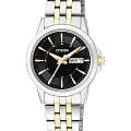 Часы Citizen EQ0608-55E выполнены в классическом стиле и станут отличным выбором для тех, кто ценит элегантность и надежность в каждом элементе. Модель оснащена точным японским кварцевым механизмом Citizen 1002, обеспечивающим стабильную работу и точный ход. Корпус диаметром 28 мм и толщиной 8 мм изготовлен из нержавеющей стали, что придаёт часам благородный оттенок и долговечность. Браслет, выполненный из стали с частичным золотистым IP-покрытиемIP-покрытиеМетод ионного напыления. Демонстрирует повышенную устойчивость к истиранию, окислению и химическим веществам. Под воздействием высокого давления и температуры около 1500°C молекулы металла надёжно соединяются с частицами корпуса часов. и оснащённый раскладной застёжкойРаскладная застёжкаТакой тип застёжки используется только на браслетах из металла. Она никогда не раскрывается полностью, происходит разделение на 2 и более частей. Раскладывающая застёжка снизит вероятность потери часов к минимуму. с системой блокировки, обеспечивает надежную фиксацию на запястье. Циферблат черного цвета украшен стрелками с люминесцентным покрытиемЛюминесцентное покрытиеПозволяет считывать показания времени в темноте. Производители наносят на стрелки, часовые индексы, безель или поверхность циферблата светонакопительный состав, дающий холодное свечение. для удобного считывания времени даже в условиях недостаточного освещения. Минеральное стеклоМинеральное стеклоМинеральное стекло представляет собой искусственно выращенный минерал кварца. Такое стекло отличается особой устойчивостью к повреждениям и царапинам. Уступает по некоторым качествам сапфировому стеклу. защищает часы от случайных царапин, а водозащита уровня 30WR позволяет не бояться случайных брызг или дождя. На циферблате также расположен календарь с отображением даты и дня недели, что делает модель ещё более функциональной. Заводная головка снабжена защитой, что повышает комфорт и безопасность использования.