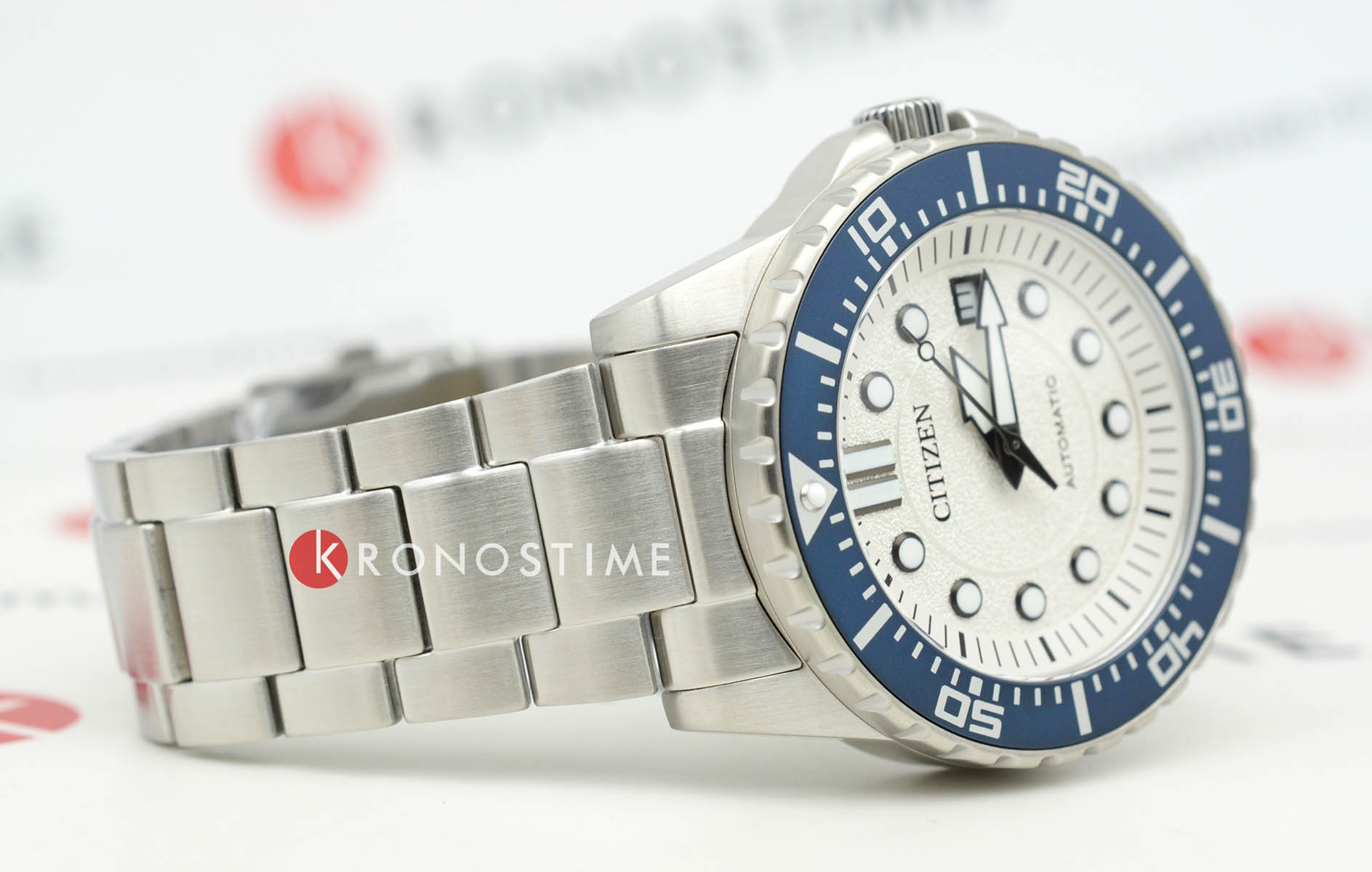 Мужские наручные часы Citizen Automatic NJ0171-81A - сочетание спортивного стиля и повседневной функциональности. Корпус из нержавеющей стали диаметром 43 мм идеально сбалансирован. Минеральное стеклоМинеральное стеклоМинеральное стекло представляет собой искусственно выращенный минерал кварца. Такое стекло отличается особой устойчивостью к повреждениям и царапинам. Уступает по некоторым качествам сапфировому стеклу. обеспечивает отличную защиту циферблата от царапин. Механические часы с автоподзаводом. Стальной браслет на раскладной застёжкеРаскладная застёжкаТакой тип застёжки используется только на браслетах из металла. Она никогда не раскрывается полностью, происходит разделение на 2 и более частей. Раскладывающая застёжка снизит вероятность потери часов к минимуму. идеально дополняют дизайн часов, обеспечивая комфортное ношение. Окошко даты в положении 3 часа. Однонаправленный вращающийся безельБезельВнешний ободок, закрепляющий стекло. В спортивных часах так называется поворотное кольцо с делениями на циферблате, выполняет роль таймера – замеряет отрезки времени на шкале. Неподвижный безель – элемент декора. Однонаправленно вращающийся безель на дайверских часах позволяет фиксировать моменты погружения и выныривания на поверхность. с IP-покрытиемIP-покрытиеМетод ионного напыления. Демонстрирует повышенную устойчивость к истиранию, окислению и химическим веществам. Под воздействием высокого давления и температуры около 1500°C молекулы металла надёжно соединяются с частицами корпуса часов.. Стрелки и метки с люминесцентным покрытиемЛюминесцентное покрытиеПозволяет считывать показания времени в темноте. Производители наносят на стрелки, часовые индексы, безель или поверхность циферблата светонакопительный состав, дающий холодное свечение.. Завинчивающаяся прозрачная задняя крышка. Циферблат с часовыми индексами в виде штрихов и точек. Часы обладают водонепроницаемостью до 100WR, что делает их идеальными для повседневной носки.