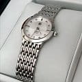 Женские наручные часы Cover Langham CO125.20 сочетают в себе элегантный дизайн и надежность современных технологий. Модель обладает круглым корпусом диаметром 25 мм, изготовленным из нержавеющей стали, что обеспечивает высокую устойчивость к внешним воздействиям. Браслет выполнен из нержавеющей стали с застежкой-бабочкойЗастёжка "бабочка"Такой вид застёжки дополняется предохранителями, помогающими избежать случайного раскрытия браслета. Обладают изящным исполнением. , которая отличается удобством использования и подходит для запястий любого размера благодаря своей посадке. Циферблат декорирован синтетическими бриллиантами, которые придают часам особый шик и неповторимый вид. Покрывает циферблат сапфировое стеклоСапфировое стеклоПрочный и надёжный материал из кристалла сапфира синтетического происхождения, характеризующийся особой твёрдостью и устойчивостью к царапинам и повреждениям., обеспечивающее прочную защиту от царапин. Часы работают на кварцевом механизме, основанном на ETA 902.002, что гарантирует точное время без необходимости подзаводки. Водонепроницаемость часов составляет 3 атмосферы, что позволяет использовать их в повседневной жизни, однако не рекомендуется для плавания или водных видов спорта.