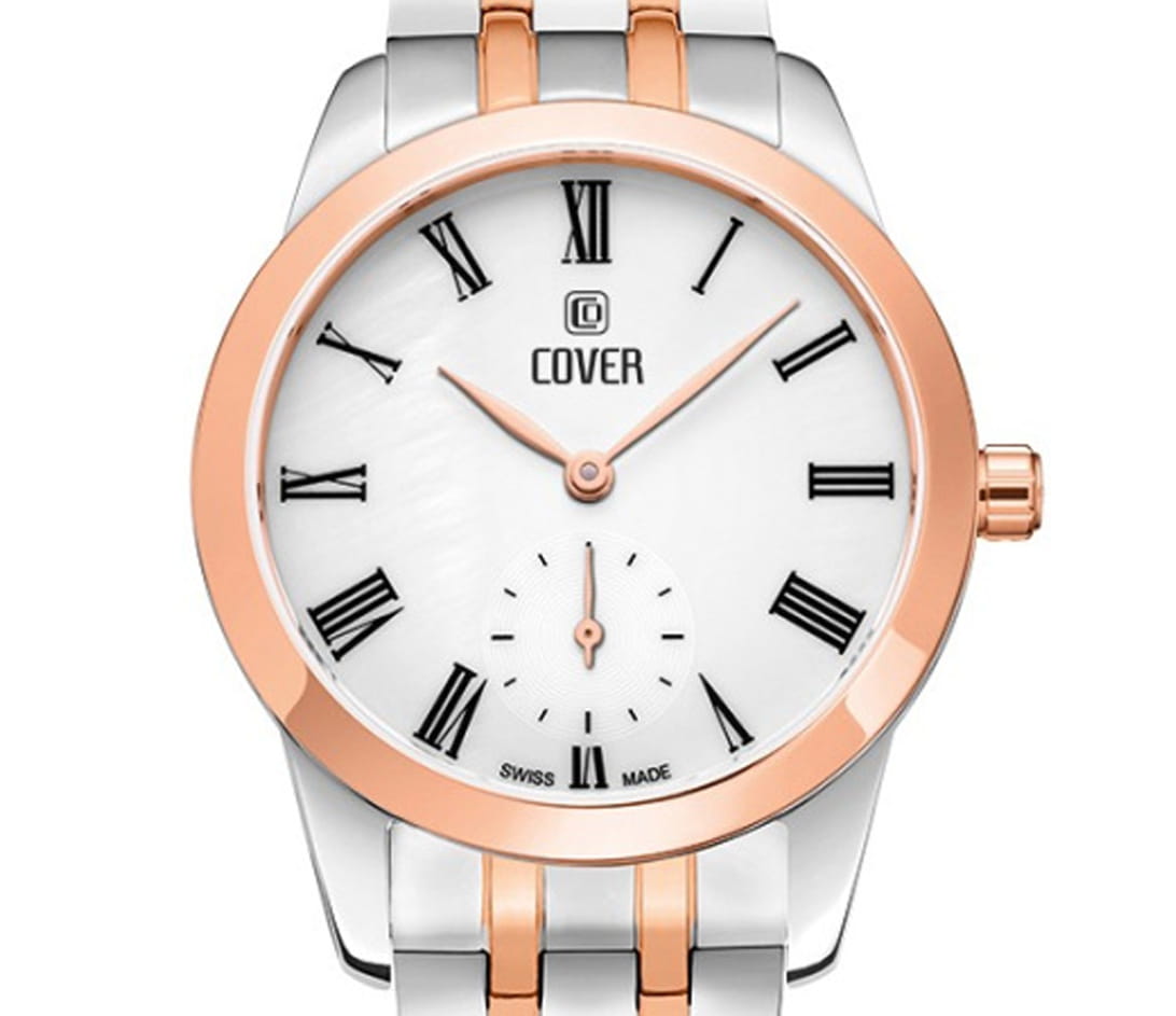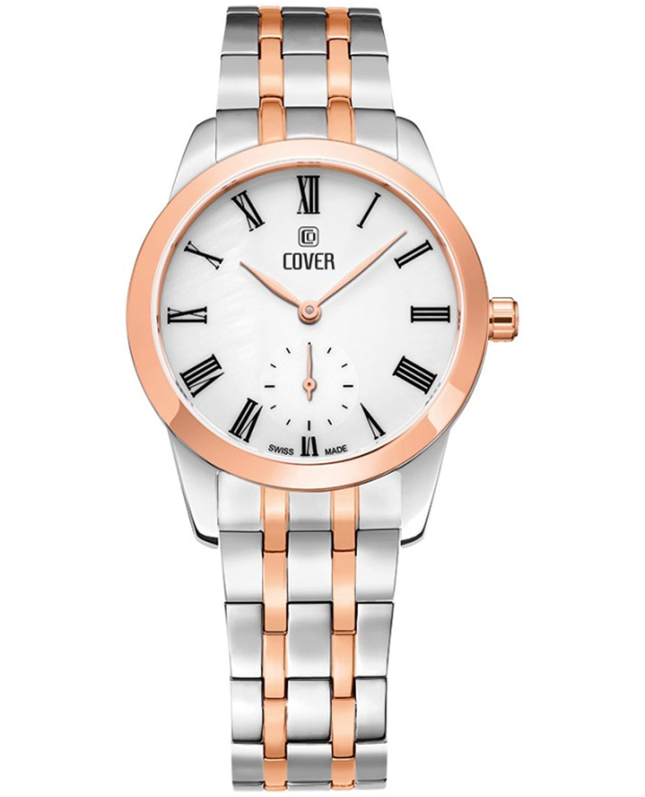 Часы Cover Nobila CO195.09 - это аксессуар для истинных леди из коллекции Nobila. Часы работают на кварцевом калибре Ronda. Белый циферблат украшен печатными римскими цифрами и субдиском малой секундной стрелки на «6 часах» и защищен минеральным стекломМинеральное стеклоМинеральное стекло представляет собой искусственно выращенный минерал кварца. Такое стекло отличается особой устойчивостью к повреждениям и царапинам. Уступает по некоторым качествам сапфировому стеклу. с сапфировым напылением. Корпус диаметром 32 мм выполнен из нержавеющей стали. Широкий полированный безельБезельВнешний ободок, закрепляющий стекло. В спортивных часах так называется поворотное кольцо с делениями на циферблате, выполняет роль таймера – замеряет отрезки времени на шкале. Неподвижный безель – элемент декора. Однонаправленно вращающийся безель на дайверских часах позволяет фиксировать моменты погружения и выныривания на поверхность. с PVD-покрытиемPVDУльтратонкое покрытие наносится в технике вакуумного напыления, сочетает в себе нитрид титана особой прочности со слоем золота или оксида хрома. Несёт в себе декоративную или защитную функцию. цвета розового золота. Интегрированный браслет состоит из 5 звеньев, на раскладной застёжкеРаскладная застёжкаТакой тип застёжки используется только на браслетах из металла. Она никогда не раскрывается полностью, происходит разделение на 2 и более частей. Раскладывающая застёжка снизит вероятность потери часов к минимуму.. Часы имеют маркировку «Swiss Made».