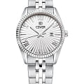 Часы COVER CO217.02 из коллекции Alston – элегантная модель швейцарского производства. Эти часы станут идеальным аксессуаром для элегантных дам, которые ценят стиль и качество. Корпус и браслет с раскладной застёжкойРаскладная застёжкаТакой тип застёжки используется только на браслетах из металла. Она никогда не раскрывается полностью, происходит разделение на 2 и более частей. Раскладывающая застёжка снизит вероятность потери часов к минимуму. изготовлены из нержавеющей стали, имеют диаметр 30 мм. На серебристом циферблате расположены  накладные римские цифры. Надежное минеральное стеклоМинеральное стеклоМинеральное стекло представляет собой искусственно выращенный минерал кварца. Такое стекло отличается особой устойчивостью к повреждениям и царапинам. Уступает по некоторым качествам сапфировому стеклу. защищает часы от царапин и долго сохраняет первоначальный внешний вид. Они показывают день месяца, индикатор которых с накладной рамкой расположен в положении «3 часа». Водозащита 50 метров делает часы практичными для повседневного использования. На часовую, минутную стрелки нанесено люминесцентное покрытиеЛюминесцентное покрытиеПозволяет считывать показания времени в темноте. Производители наносят на стрелки, часовые индексы, безель или поверхность циферблата светонакопительный состав, дающий холодное свечение., которое светится в темноте, создавая необычное изображение. Эти часы идеально подойдут для светских раутов, бизнес-встреч и других важных событий, подчеркнут вашу элегантность и статус.