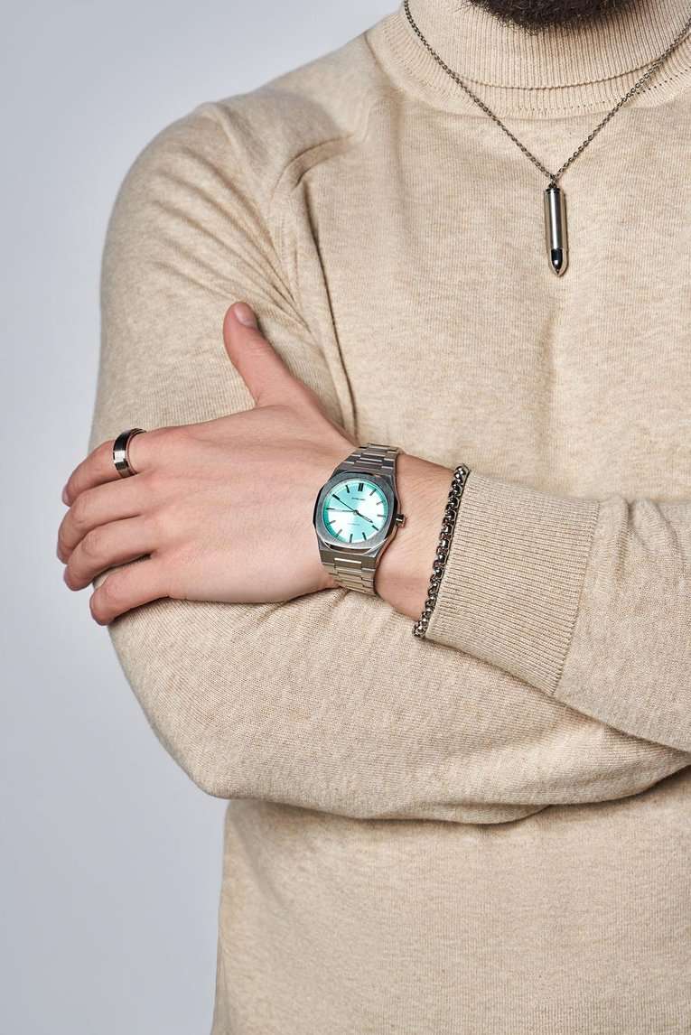 Часы D1 Milano Beryl Code ATBU02 – стильный аксессуар для современных мужчин и женщин. Часы механические с автоподзаводом. Корпус выполнен из прочной нержавеющей стали 316L, а зеленый циферблат украшен простыми штрихами вместо цифр. Стрелки с люминесцентным покрытиемЛюминесцентное покрытиеПозволяет считывать показания времени в темноте. Производители наносят на стрелки, часовые индексы, безель или поверхность циферблата светонакопительный состав, дающий холодное свечение.. Задняя крышка закреплена на 8 винтах, что обеспечивает надежность конструкции. Стальной браслет на скрытой раскладной застёжкеРаскладная застёжкаТакой тип застёжки используется только на браслетах из металла. Она никогда не раскрывается полностью, происходит разделение на 2 и более частей. Раскладывающая застёжка снизит вероятность потери часов к минимуму..  Часы имеют водозащиту 100 метров (100WR), что позволит плавать, нырять и заниматься другими водными видами спорта. Часы сочетают в себе классический дизайн и современные технологии производства.