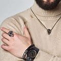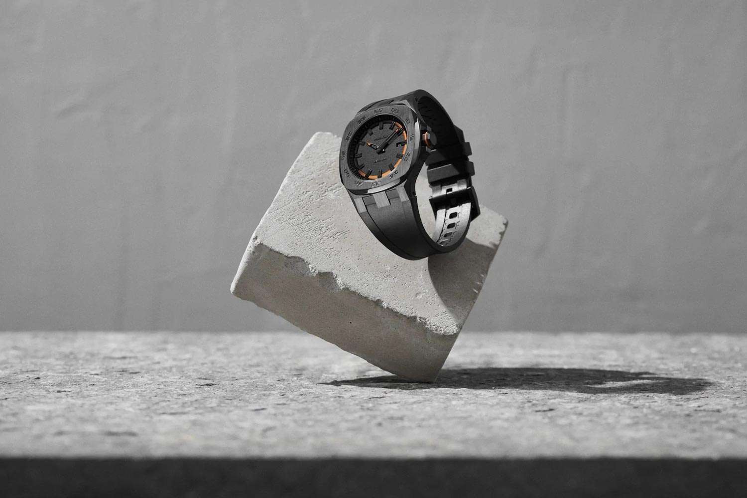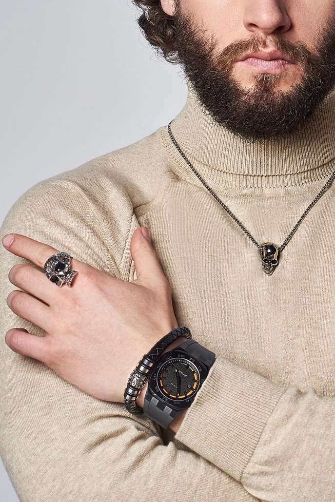 Мужские часы D1 Milano DTRJ03 из коллекции Delta 001 - воплощение современной мужественности. Часы с кварцевым механизмом Miyota GM17 имеют стальной корпус с черным PVD-покрытиемPVDУльтратонкое покрытие наносится в технике вакуумного напыления, сочетает в себе нитрид титана особой прочности со слоем золота или оксида хрома. Несёт в себе декоративную или защитную функцию., диаметром 41,5 мм и толщиной 8,7 мм. Циферблат черно-оранжевый с пескоструйной обработкой, с метками в виде штрихов. Окошко даты в положении 3 часа. Циферблат покрыт сапфировым стекломСапфировое стеклоПрочный и надёжный материал из кристалла сапфира синтетического происхождения, характеризующийся особой твёрдостью и устойчивостью к царапинам и повреждениям. с антибликовым покрытием. Водозащита часов - 50 метров (50WR) - позволит защитить корпус от случайных брызг или капель дождя. Задняя стальная крышка часов крепится на 4 винтах. Удобный каучуковый ремешок с классической застежкой завершает дизайн часов.