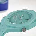 Часы D1 Milano Polycarbon HPCBJ31 – молодежные часы в стиле унисекс для повседневных образов. Кварцевые часы с калибром Seiko VJ32B. Модель HotHot Aqua Polycarbon имеет бирюзовый корпус из поликарбоната с покрытием Софт-Тач. Циферблат лаконичный без индексов, защищен минеральным стекломМинеральное стеклоМинеральное стекло представляет собой искусственно выращенный минерал кварца. Такое стекло отличается особой устойчивостью к повреждениям и царапинам. Уступает по некоторым качествам сапфировому стеклу. с антибликовым покрытием. Стрелки с люминесцентным покрытиемЛюминесцентное покрытиеПозволяет считывать показания времени в темноте. Производители наносят на стрелки, часовые индексы, безель или поверхность циферблата светонакопительный состав, дающий холодное свечение.. Окошко даты находится в положении 3 часов. Яркая секундная стрелка дополняет стильный образ. Стальная задняя крышка на 4 винтах. Пластиковый браслет на застёжке «бабочка» с кнопкамиЗастёжка "бабочка"Такой вид застёжки дополняется предохранителями, помогающими избежать случайного раскрытия браслета. Обладают изящным исполнением. .