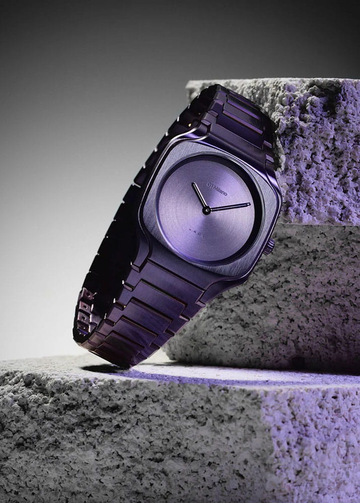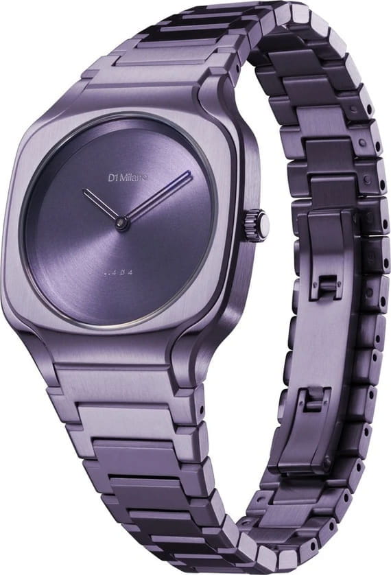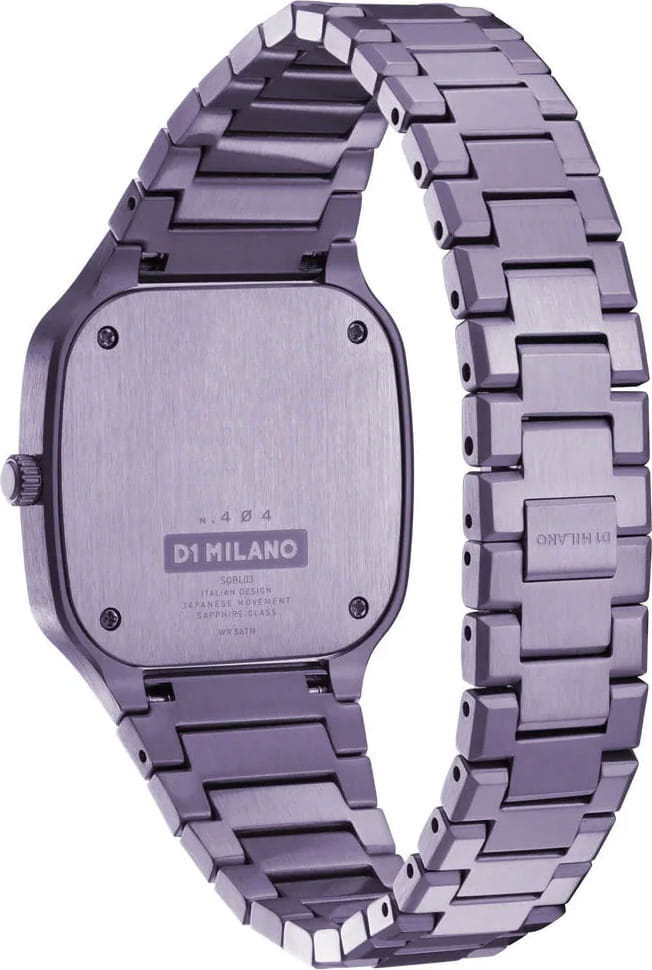 Часы D1 Milano Square Disco Purple SQBL02 — это уникальные кварцевые часы, которые подчеркнут ваш изысканный стиль. Эти наручные часы с эффектным монохромным дизайном станут выразительным акцентом вашего образа. Изысканный корпус из стали 316L с PVD-покрытиемPVDУльтратонкое покрытие наносится в технике вакуумного напыления, сочетает в себе нитрид титана особой прочности со слоем золота или оксида хрома. Несёт в себе декоративную или защитную функцию. диаметром 32 мм придает часам современный и утонченный вид. Фиолетовый циферблат, выполненный по технологии Sunray, а изысканные стрелки создают стильный контраст, подчёркивая элегантность модели. Задняя крышка закреплена на 4-х винтах. Стальной браслет с PVD-покрытиемPVDУльтратонкое покрытие наносится в технике вакуумного напыления, сочетает в себе нитрид титана особой прочности со слоем золота или оксида хрома. Несёт в себе декоративную или защитную функцию. с застёжкой «бабочка»Застёжка "бабочка"Такой вид застёжки дополняется предохранителями, помогающими избежать случайного раскрытия браслета. Обладают изящным исполнением. обеспечивает надежность и комфорт в повседневном использовании. Сапфировое стеклоСапфировое стеклоПрочный и надёжный материал из кристалла сапфира синтетического происхождения, характеризующийся особой твёрдостью и устойчивостью к царапинам и повреждениям. с антибликовым покрытиемАнтибликовое покрытиеСлой оксида металла в 0,13-0,3 микрон, благодаря которому стекло часов не бликует и не отражает свет. Антибликовое покрытие уменьшает отражение света в 10 раз, обеспечивая отличную читаемость показателей циферблата. защищает циферблат, а водозащита до 50WR делает эти часы практичным выбором для любых условий. Благодаря калибру Miyota 1L22 часы отличается точностью и надежностью. Эти итальянские часы представляют собой идеальное сочетание традиционного мастерства и инновационного подхода, воплощая в себе новый взгляд на классическую элегантность.