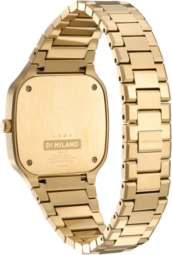 Часы D1 Milano Square Disco Gold SQBL03 — это уникальные кварцевые часы, которые подчеркнут ваш изысканный стиль. Эти наручные часы с эффектным монохромным дизайном станут выразительным акцентом вашего образа. Изысканный корпус из стали 316L с PVD-покрытиемPVDУльтратонкое покрытие наносится в технике вакуумного напыления, сочетает в себе нитрид титана особой прочности со слоем золота или оксида хрома. Несёт в себе декоративную или защитную функцию. диаметром 32 мм придает часам современный и утонченный вид. Золотой циферблат, выполненный по технологии Sunray, а изысканные стрелки создают стильный контраст, подчёркивая элегантность модели. Задняя крышка закреплена на 4-х винтах. Стальной браслет с PVD-покрытиемPVDУльтратонкое покрытие наносится в технике вакуумного напыления, сочетает в себе нитрид титана особой прочности со слоем золота или оксида хрома. Несёт в себе декоративную или защитную функцию. с застёжкой «бабочка»Застёжка "бабочка"Такой вид застёжки дополняется предохранителями, помогающими избежать случайного раскрытия браслета. Обладают изящным исполнением. обеспечивает надежность и комфорт в повседневном использовании. Сапфировое стеклоСапфировое стеклоПрочный и надёжный материал из кристалла сапфира синтетического происхождения, характеризующийся особой твёрдостью и устойчивостью к царапинам и повреждениям. с антибликовым покрытиемАнтибликовое покрытиеСлой оксида металла в 0,13-0,3 микрон, благодаря которому стекло часов не бликует и не отражает свет. Антибликовое покрытие уменьшает отражение света в 10 раз, обеспечивая отличную читаемость показателей циферблата. защищает циферблат, а водозащита до 50WR делает эти часы практичным выбором для любых условий. Благодаря калибру Miyota 1L22 часы отличается точностью и надежностью. Эти итальянские часы представляют собой идеальное сочетание традиционного мастерства и инновационного подхода, воплощая в себе новый взгляд на классическую элегантность.