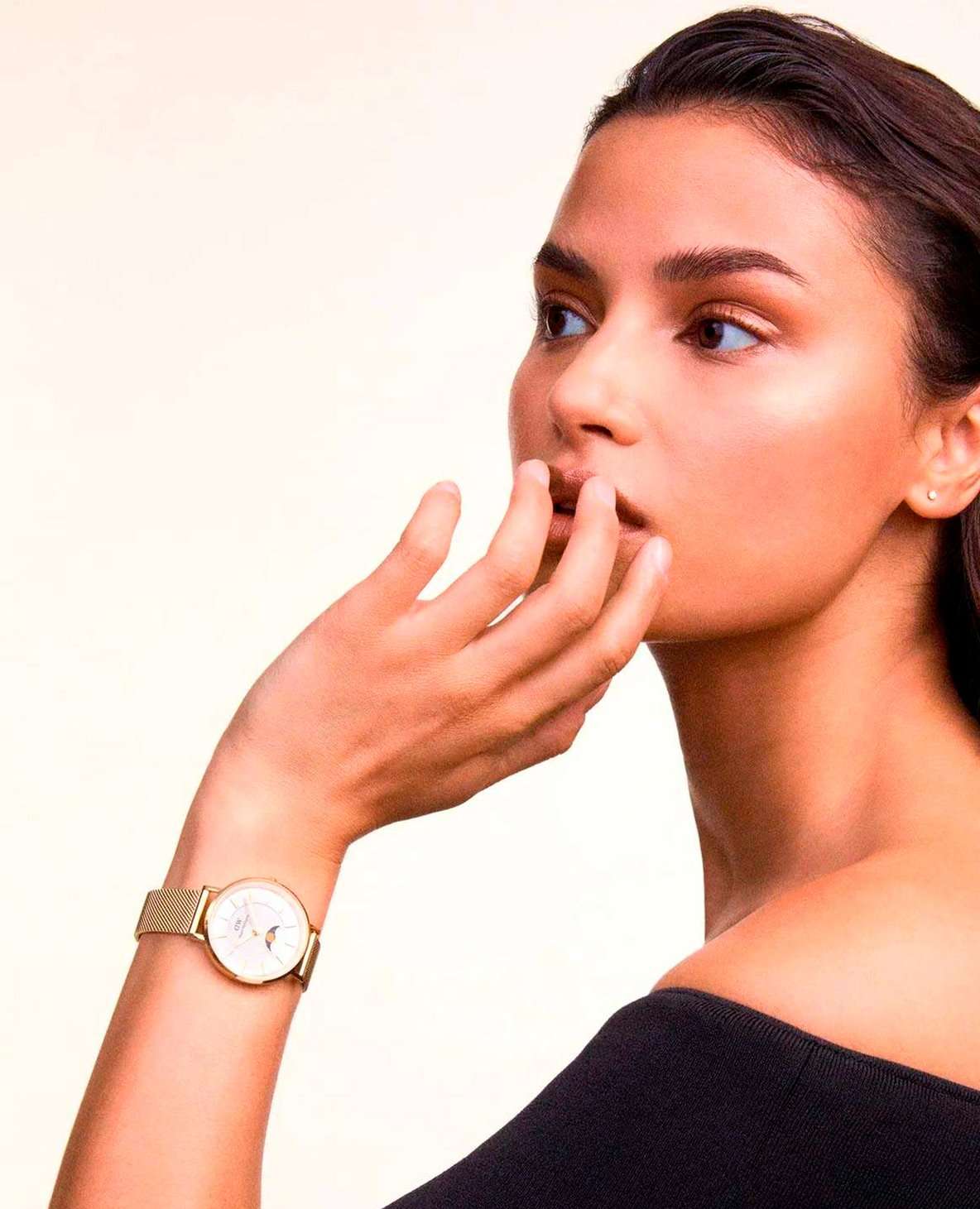 Женские наручные часы Daniel Wellington Petite Lune Evergold DW00100771 представляют собой элегантный аксессуар с уникальным дизайном. Модель обладает круглым корпусом диаметром 32 мм, выполненным из нержавеющей стали 316L с PVD-покрытиемPVDУльтратонкое покрытие наносится в технике вакуумного напыления, сочетает в себе нитрид титана особой прочности со слоем золота или оксида хрома. Несёт в себе декоративную или защитную функцию. золотистого цвета, что обеспечивает высокую устойчивость к внешним воздействиям и придает изделию премиальный вид . Браслет из того же материала в миланском плетении на раскладном замкеРаскладной замокДанный вариант застежки используется только на часах с металлическим браслетом. Отличительная особенность такого крепления в том, что длина браслета становится универсальной и вы можете самостоятельно отрегулировать нужный вам размер – застежка просто двигается по браслету часов., гарантирующий комфортное ношение . Циферблат белого цвета дополнен уникальным индикатором фаз Луны, который отслеживает положение Луны в течение месяца, меняясь от новолуния до полнолуния и обратно . Для защиты используется минеральное стеклоМинеральное стеклоМинеральное стекло представляет собой искусственно выращенный минерал кварца. Такое стекло отличается особой устойчивостью к повреждениям и царапинам. Уступает по некоторым качествам сапфировому стеклу., устойчивое к царапинам и механическим повреждениям . Часы работают на японском кварцевом механизме, обеспечивающем высокую точность хода . Водонепроницаемость модели составляет 30 метров / 3 ATM, что позволяет использовать их в повседневных условиях, например, при мытье рук или в дождь, но не рекомендуется для плавания . Простота и изысканность дизайна делают эту модель универсальным аксессуаром для женщин, ценящих стиль и функциональность .