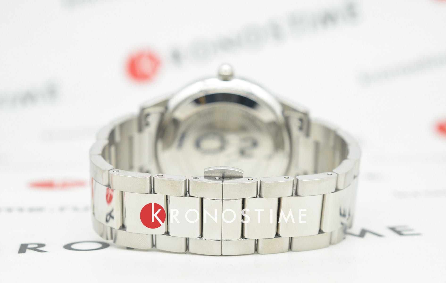 Стальной браслет с чередованием сатинированных и полированных звеньев фиксируется на запястье при помощи удобной застёжке-бабочке с кнопкамиЗастёжка "бабочка"Такой вид застёжки дополняется предохранителями, помогающими избежать случайного раскрытия браслета. Обладают изящным исполнением. , обеспечивающей комфорт и надёжность при носке.
