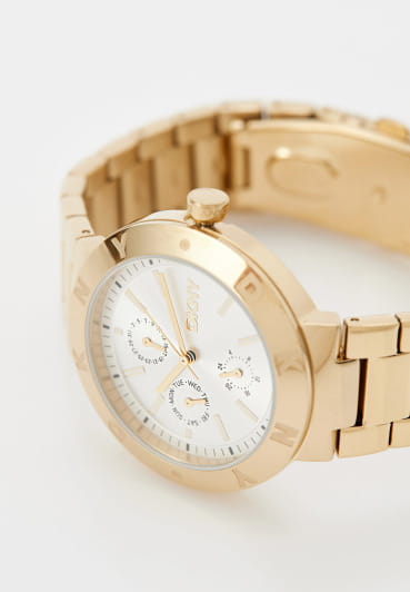 Женские наручные часы DKNY DK1L022M0035 – модель сочетает в себе элегантный дизайн и спортивный дух, что делает ее идеальным аксессуаром для современных активных женщин. Корпус из нержавеющей стали диаметром 38 мм и минеральное стеклоМинеральное стеклоМинеральное стекло представляет собой искусственно выращенный минерал кварца. Такое стекло отличается особой устойчивостью к повреждениям и царапинам. Уступает по некоторым качествам сапфировому стеклу. обеспечивает защиту от царапин, а водонепроницаемость до 50 метров делает модель практичной для активного отдыха или повседневной носки. Браслет из нержавеющей стали с IP-покрытиемIP-покрытиеМетод ионного напыления. Демонстрирует повышенную устойчивость к истиранию, окислению и химическим веществам. Под воздействием высокого давления и температуры около 1500°C молекулы металла надёжно соединяются с частицами корпуса часов. на раскладной застёжкеРаскладная застёжкаТакой тип застёжки используется только на браслетах из металла. Она никогда не раскрывается полностью, происходит разделение на 2 и более частей. Раскладывающая застёжка снизит вероятность потери часов к минимуму. надежно фиксирует часы на руке. С DKNY Eastside Maxi вы добавите в свою жизнь нотки стиля и уверенности, делая каждый день особенным и ярким.