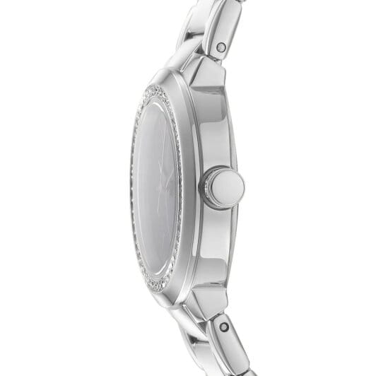 Изящные женские наручные часы DKNY Eastside Mini DK1L024M0115 гармонично объединяют стиль и практичность. Корпус из нержавеющей стали диаметром 28 мм и минеральное стеклоМинеральное стеклоМинеральное стекло представляет собой искусственно выращенный минерал кварца. Такое стекло отличается особой устойчивостью к повреждениям и царапинам. Уступает по некоторым качествам сапфировому стеклу. обеспечивает защиту от царапин, а водонепроницаемость до 50 метров делает модель практичной для активного отдыха или повседневной носки. Браслет из нержавеющей стали на раскладной застёжкеРаскладная застёжкаТакой тип застёжки используется только на браслетах из металла. Она никогда не раскрывается полностью, происходит разделение на 2 и более частей. Раскладывающая застёжка снизит вероятность потери часов к минимуму. надежно фиксирует часы на руке и подчёркивает женственность дизайна. БезельБезельВнешний ободок, закрепляющий стекло. В спортивных часах так называется поворотное кольцо с делениями на циферблате, выполняет роль таймера – замеряет отрезки времени на шкале. Неподвижный безель – элемент декора. Однонаправленно вращающийся безель на дайверских часах позволяет фиксировать моменты погружения и выныривания на поверхность. инкрустирован кристаллами. Эта модель станет идеальным дополнением вашего гардероба, подчеркнув индивидуальный стиль.