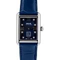 Epos 8002.702.20.86.16 — женская модель с утончённым классическим стилем и прямоугольным корпусом, выполненным из нержавеющей стали. Синий циферблат оформлен римскими индексами и утончённым узором «Clous de Paris», создающим игру света и подчёркивающим глубину дизайна, так же инкрустирован бриллиантами. Защитную функцию выполняет сапфировое стеклоСапфировое стеклоПрочный и надёжный материал из кристалла сапфира синтетического происхождения, характеризующийся особой твёрдостью и устойчивостью к царапинам и повреждениям., стойкое к царапинам и сохраняющее прозрачность. В основе лежит швейцарский автоматический механизм, обеспечивающий стабильность и точность хода. Функции включают индикацию часов, минут и малую секундную шкалу, расположенную в позиции «6 часов». Часы дополнены кожаным ремешком синего цвета, который гармонично завершает строгий образ модели.