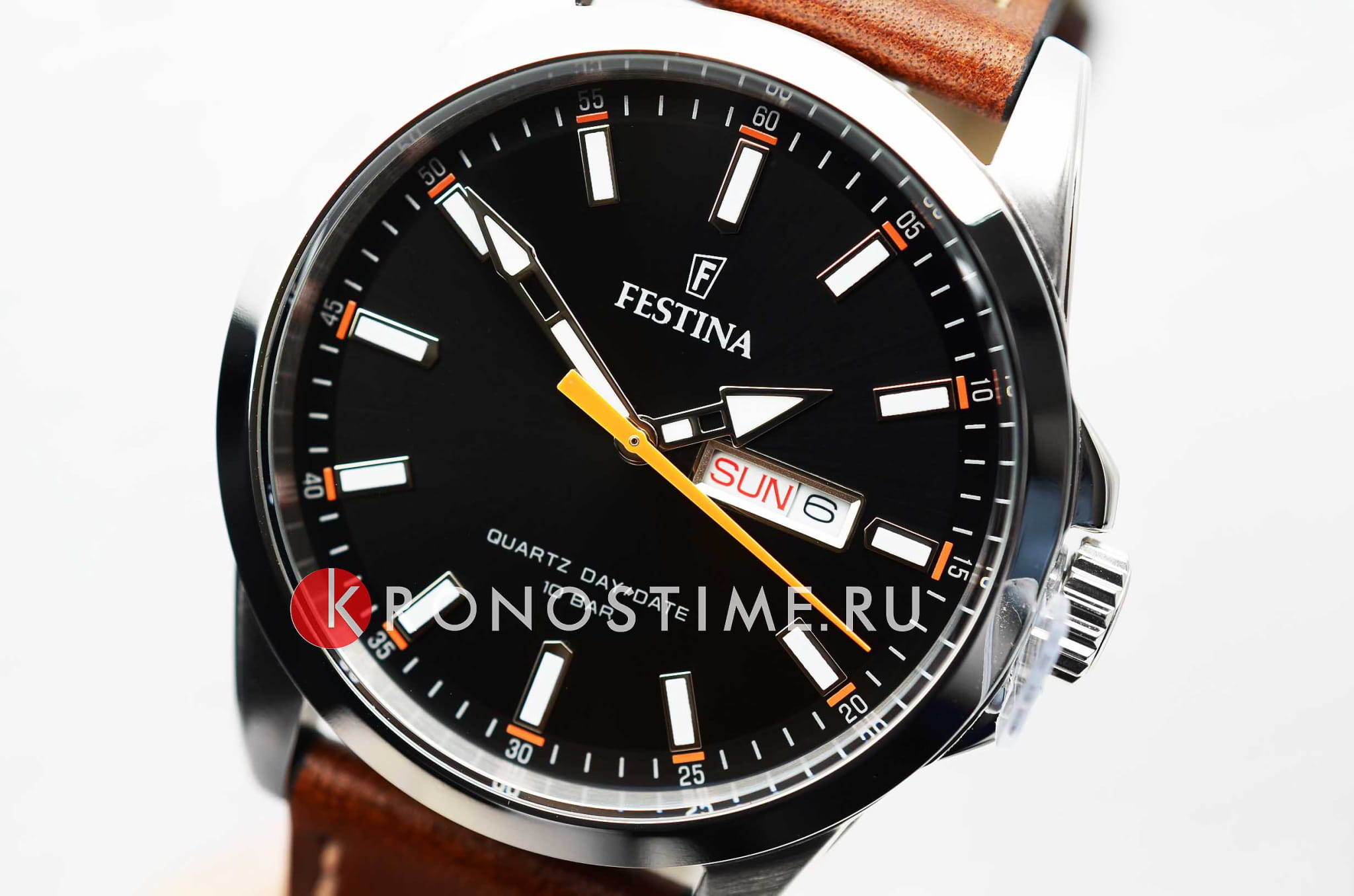 Наручные мужские часы с хронографом Festina Acero Clasico F20358/2, кварцевый механизм с высокой точностью. Класс водозащиты: 100 метров, позволит плавать, нырять и заниматься другими водными видами спорта. Корпус часов изготовлен из стали. Циферблат с люминесцентным покрытиемЛюминесцентное покрытиеПозволяет считывать показания времени в темноте. Производители наносят на стрелки, часовые индексы, безель или поверхность циферблата светонакопительный состав, дающий холодное свечение. стрелок и меток, дополнен минеральным стекломМинеральное стеклоМинеральное стекло представляет собой искусственно выращенный минерал кварца. Такое стекло отличается особой устойчивостью к повреждениям и царапинам. Уступает по некоторым качествам сапфировому стеклу. , устойчивым к мелким механическим повреждениям