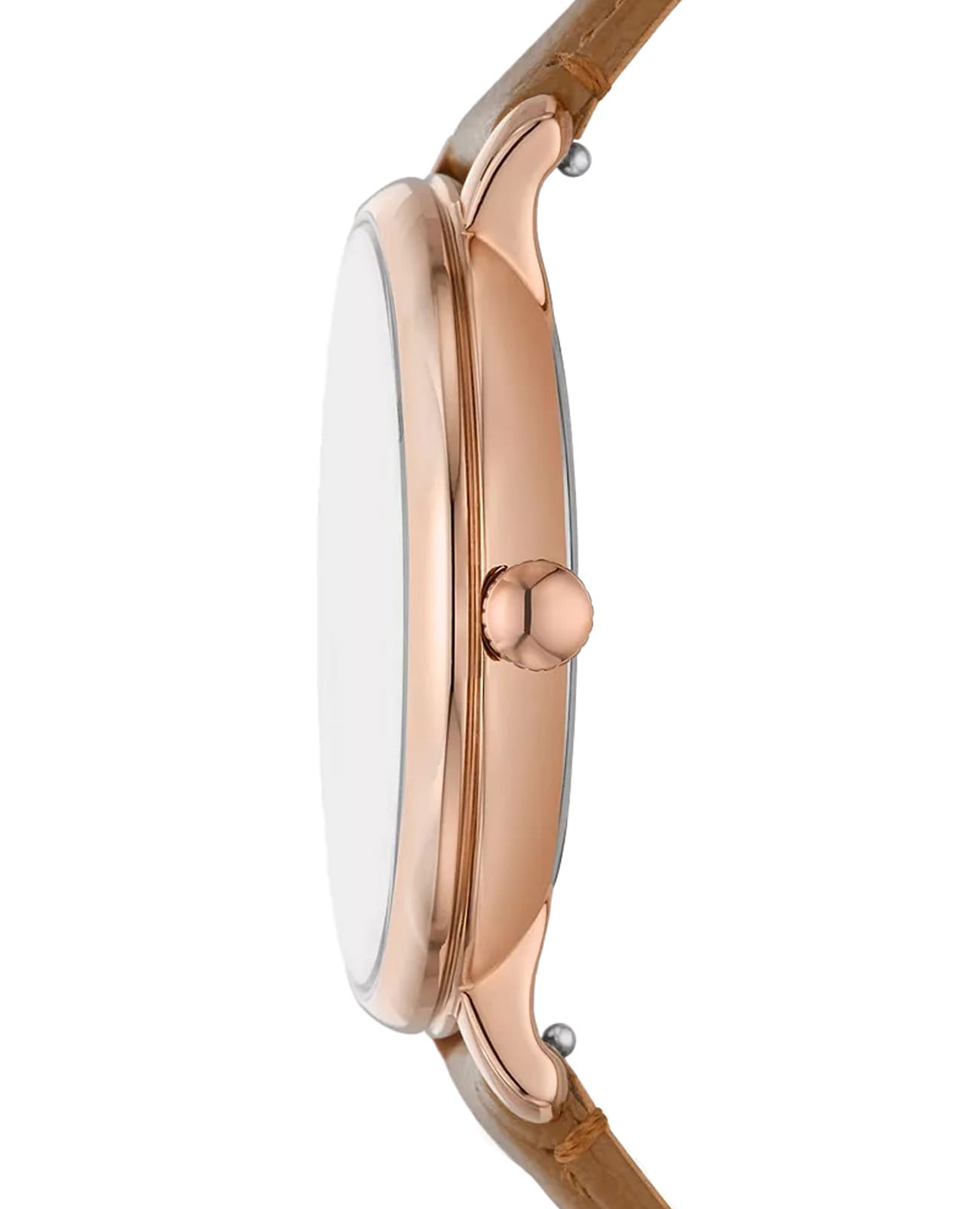 Женские американские часы с минеральным стекломМинеральное стеклоМинеральное стекло представляет собой искусственно выращенный минерал кварца. Такое стекло отличается особой устойчивостью к повреждениям и царапинам. Уступает по некоторым качествам сапфировому стеклу. Fossil Jacqueline ES5274, кварцевый механизм с высокой точностью. Корпус часов изготовлен из нержавеющей стали с IP-покрытиемIP-покрытиеМетод ионного напыления. Демонстрирует повышенную устойчивость к истиранию, окислению и химическим веществам. Под воздействием высокого давления и температуры около 1500°C молекулы металла надёжно соединяются с частицами корпуса часов.. Циферблат украшен объемным изображением цветов. Окошко даты в положении 3 часов. Метки в виде штрихов и двух римских цифр. Рифленая заводная головка с защитой. Класс водозащиты: 30 метров, позволит защитить корпус от случайных брызг или капель дождя. Кожаный ремешок на стандартной застежке.