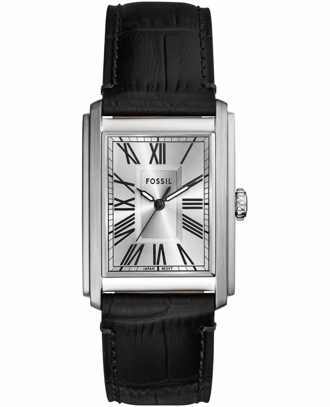 Часы Fossil FS6078 идеально подойдут для тех, кто ценит классический стиль, дополненный современными деталями, и ищет аксессуар, способный подчеркнуть их индивидуальность и элегантность. Эти мужские наручные часы производятся в США и оснащены надежным кварцевым механизмом, который обеспечивает точность и стабильность в работе. Прямоугольный корпус из стали гарантирует долговечность и придает часам стильный и современный вид. Серебристый циферблат, выполненный по технологии Sunray, создает эффект солнечных лучей, что добавляет глубину и изысканность дизайну. Метки в виде римских цифр придают циферблату классический акцент, а рифленая заводная головка облегчает настройку времени. Стрелки с люминесцентным покрытиемЛюминесцентное покрытиеПозволяет считывать показания времени в темноте. Производители наносят на стрелки, часовые индексы, безель или поверхность циферблата светонакопительный состав, дающий холодное свечение. позволяют легко считывать время даже в условиях низкой освещенности. Часы оснащены удобным кожаным черным ремешком с классической застежкой, который обеспечивает комфортное ношение и надежную фиксацию на запястье. Ширина ремешка составляет 22 мм, а длина — 200 мм, что делает их подходящими для большинства запястий. Водозащита уровня 50WR защищает механизм от случайных брызг, а минеральное стеклоМинеральное стеклоМинеральное стекло представляет собой искусственно выращенный минерал кварца. Такое стекло отличается особой устойчивостью к повреждениям и царапинам. Уступает по некоторым качествам сапфировому стеклу. оберегает циферблат от царапин и повреждений.