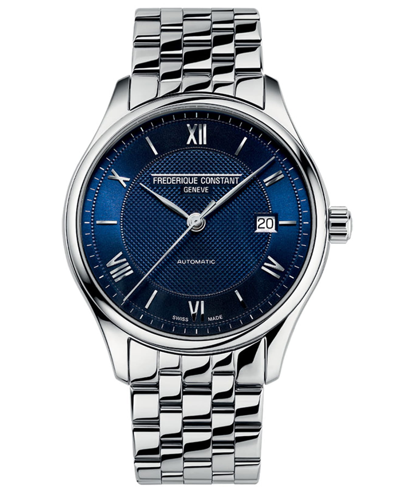 Мужские механические часы с автоподзаводом Frederique Constant Classics Index Automatic FC-303MN5B6B-SET. Калибр механизма FC-303 на 26 камнях. Частота 28 800 полуколебаний в час. Запас хода 38 часов. Центральные часовая, минутная и секундная стрелки. Синий циферблат. Апертура даты в позиции 3 часов. Круглый корпус выполнен из полированной нержавеющей стали. Диаметр корпуса составляет 40 мм. Стальной браслет, раскладывающаяся застежка. Устойчивое к возникновению царапин сапфировое стекло. Водостойкость WR 50 (мытье рук, дождь). В комплекте кожаный ремешок.