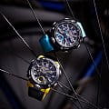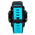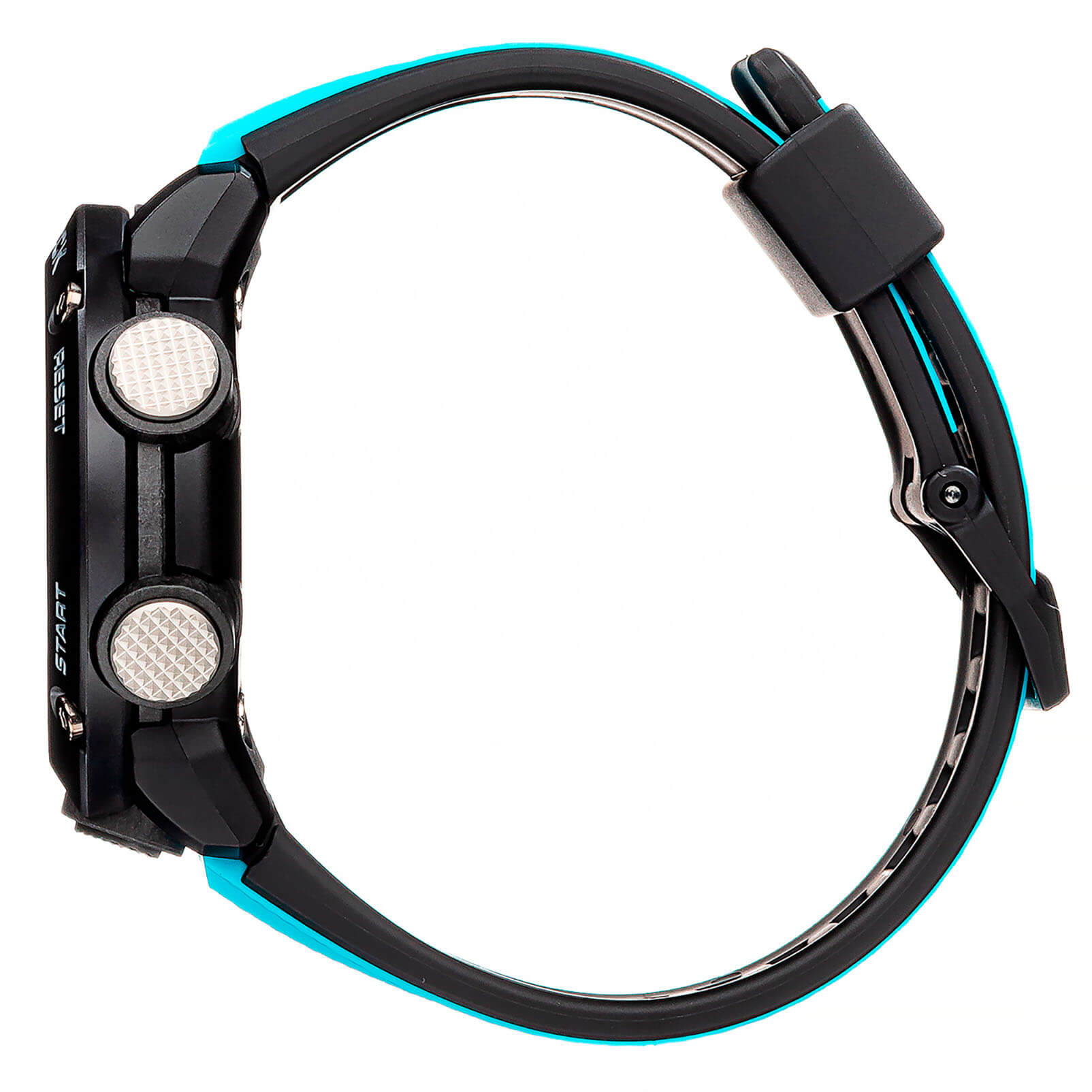 Массивный тёмный аксессуар дополнен голубыми цветовыми акцентами в виде деталей на циферблате и полимерного браслета. Наручные часы в спортивном стиле имеют противоударный корпусУдаропрочный корпусМеханизм заключён в корпус, выполненный из современных материалов, устойчивых к ударам, механическим повреждениям и падению с высоты: инновационный пластик, карбон, нержавеющая сталь, титан., выдерживающий большие нагрузки, он сделан по технологии Carbon Core GuardCarbon Core Guard Новейшая структура корпуса, разработанная Casio. Полиуретановая пластина дополнительно усилена карбоновыми вставками, что придаёт специальную защиту от механических повреждений. Карбон отличается лёгкостью и прочностью.. Кварцевый механизм получает питание от батарейки, срок её службы - 3 года. Двойная подсветка циферблата и дисплеев. Минеральное стекло. Водостойкость 20 бар. Двойная задняя крышка: первая из стали, вторая из пластика. Функционал: таймер, будильник, хронографХронографФункция позволяет измерять отрезки времени с особой точностью: часы, минуты, секунды. Верным признаком хронографа является наличие на циферблате 3 дополнительных окошек-счётчиков., секундомер, автоматический календарь, мировое времяМировое время Полезное часовое усложнение, отображающее время в основных городах и известных областях по всему миру, оно связано с часовыми поясами, удобно для путешественников и бизнесменов. . Габариты: 48,7 x 51,2 x 14,1 мм.