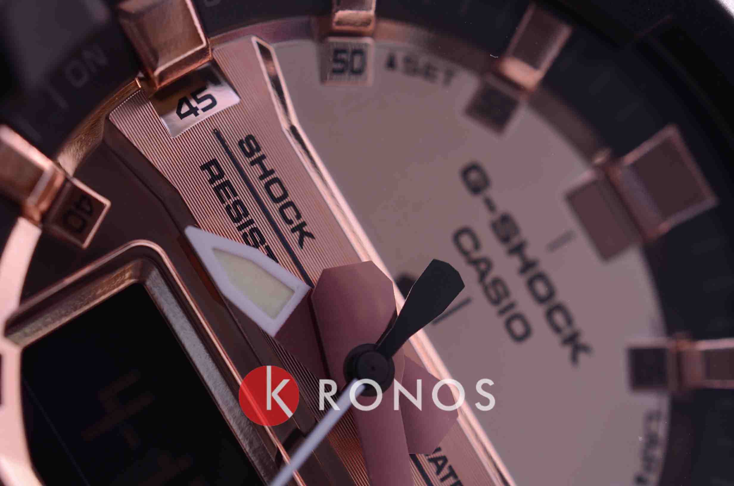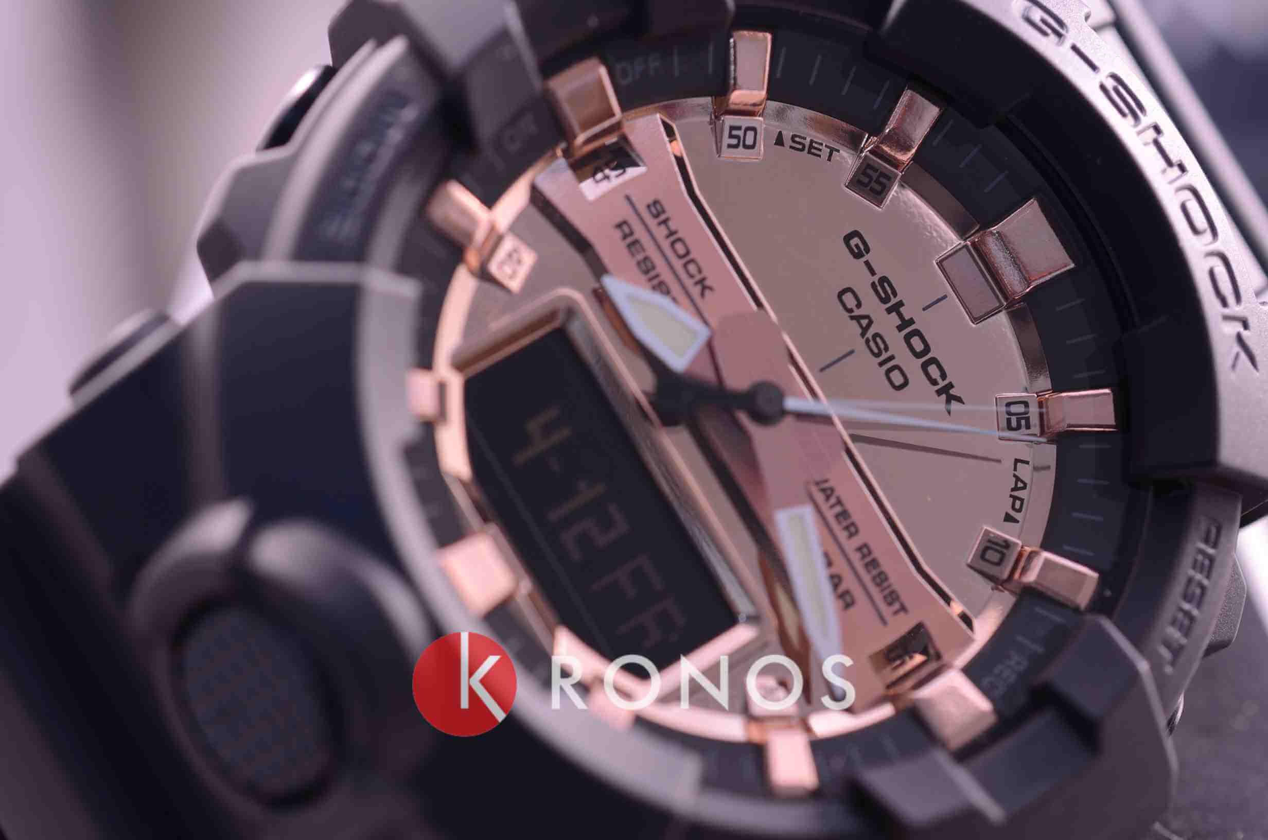 Дизайн модели умело комбинирует спортивные и fashion-элементы, чёрный матовый противоударный корпусУдаропрочный корпусМеханизм заключён в корпус, выполненный из современных материалов, устойчивых к ударам, механическим повреждениям и падению с высоты: инновационный пластик, карбон, нержавеющая сталь, титан. красиво обрамляет металлизированный циферблат цвета розового золота. По сравнению с часами серии GA-700, аксессуар получил уменьшенный размер корпуса, что положительно сказалось на комфортном ношении. Кварцевый калибр японского производства работает от батарейки, срок её службы составляет 3 года. Белая светодиодная подсветкаСветодиодная подсветкаСветодиодная или LED-подсветка обеспечивает появление яркого холодного свечения за счёт LED-элементов - маленьких лампочек. Они потребляют минимальное количество энергии, чаще всего можно встретить 1 светодиод, в нижней части циферблата. циферблата, стрелки с люминесцентным покрытиемЛюминесцентное покрытиеПозволяет считывать показания времени в темноте. Производители наносят на стрелки, часовые индексы, безель или поверхность циферблата светонакопительный состав, дающий холодное свечение.. Прочный полимерный ремешок. Водонепроницаемость 20 бар. Минеральное стекло. 12/24-часовое отображение времени. Секундомер с точностью в 1/100 секунды, мировое времяМировое время Полезное часовое усложнение, отображающее время в основных городах и известных областях по всему миру, оно связано с часовыми поясами, удобно для путешественников и бизнесменов. , таймер, будильник, календарь. Габариты: 54,1 x 48,6 x 15,5 мм.