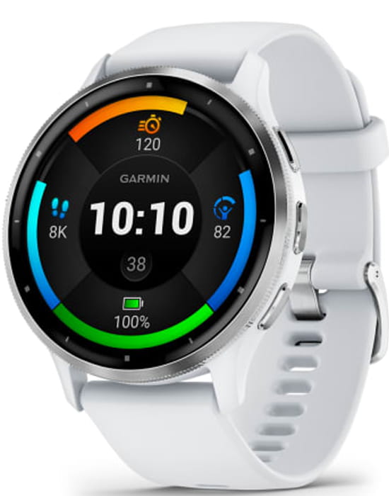 Умные многофункциональные мужские часы Garmin Venu 3 010-02784-00, электронный механизм с высокой точностью. Класс водозащиты: 50 метров, позволит защитить корпус от случайных брызг или капель дождя. Материал корпуса: пластик. Циферблат с минеральным стекломМинеральное стеклоМинеральное стекло представляет собой искусственно выращенный минерал кварца. Такое стекло отличается особой устойчивостью к повреждениям и царапинам. Уступает по некоторым качествам сапфировому стеклу.. Экран с светодиодной подсветкойСветодиодная подсветкаСветодиодная или LED-подсветка обеспечивает появление яркого холодного свечения за счёт LED-элементов - маленьких лампочек. Они потребляют минимальное количество энергии, чаще всего можно встретить 1 светодиод, в нижней части циферблата..БезельБезельВнешний ободок, закрепляющий стекло. В спортивных часах так называется поворотное кольцо с делениями на циферблате, выполняет роль таймера – замеряет отрезки времени на шкале. Неподвижный безель – элемент декора. Однонаправленно вращающийся безель на дайверских часах позволяет фиксировать моменты погружения и выныривания на поверхность. из нержавеющей стали.