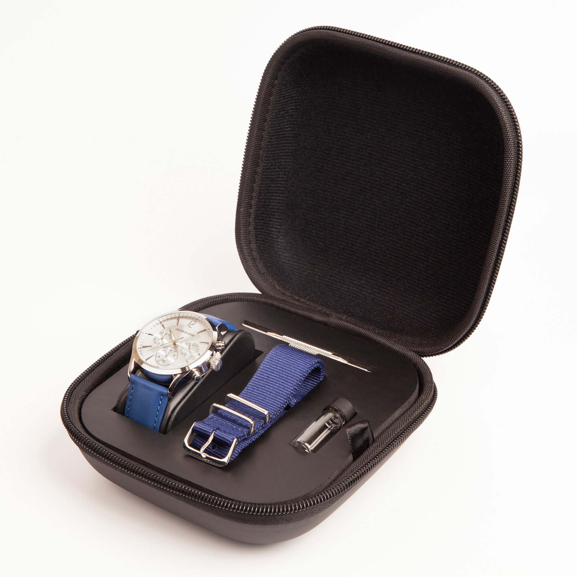 Дополнительный тканевый ремешок в стиле NATO Strap в комплекте и инструмент для его замены.