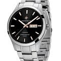 Мужские часы Greenwich Good Luck GW 054.10.30, механический механизм (автоматический калибр) с минеральным стекломМинеральное стеклоМинеральное стекло представляет собой искусственно выращенный минерал кварца. Такое стекло отличается особой устойчивостью к повреждениям и царапинам. Уступает по некоторым качествам сапфировому стеклу.. Корпус из нержавеющей стали. Стрелки и метки с люминесцентным покрытиемЛюминесцентное покрытиеПозволяет считывать показания времени в темноте. Производители наносят на стрелки, часовые индексы, безель или поверхность циферблата светонакопительный состав, дающий холодное свечение.. Окошко даты и дня недели находится в положении 3 часа. Класс водозащиты: 100 метров, позволит плавать, нырять и заниматься другими водными видами спорта. Стальной браслет на раскладной застёжкеРаскладная застёжкаТакой тип застёжки используется только на браслетах из металла. Она никогда не раскрывается полностью, происходит разделение на 2 и более частей. Раскладывающая застёжка снизит вероятность потери часов к минимуму..