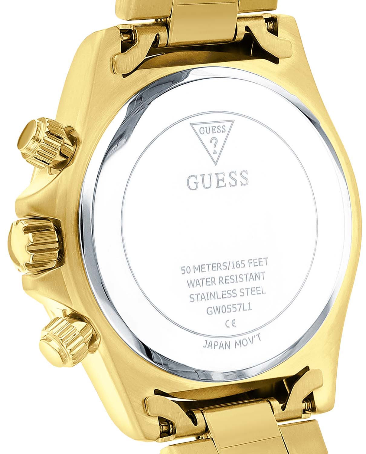 Женские наручные часы-скелетоны с минеральным стекломМинеральное стеклоМинеральное стекло представляет собой искусственно выращенный минерал кварца. Такое стекло отличается особой устойчивостью к повреждениям и царапинам. Уступает по некоторым качествам сапфировому стеклу. Guess Mirage GW0557L1, кварцевый механизм с высокой точностью. Класс водозащиты: 30 метров, позволит защитить корпус от случайных брызг или капель дождя. Корпус часов изготовлен из стали с IP-покрытиемIP-покрытиеМетод ионного напыления. Демонстрирует повышенную устойчивость к истиранию, окислению и химическим веществам. Под воздействием высокого давления и температуры около 1500°C молекулы металла надёжно соединяются с частицами корпуса часов.. Стальной браслет на раскладной застёжкеРаскладная застёжкаТакой тип застёжки используется только на браслетах из металла. Она никогда не раскрывается полностью, происходит разделение на 2 и более частей. Раскладывающая застёжка снизит вероятность потери часов к минимуму. с IP-покрытиемIP-покрытиеМетод ионного напыления. Демонстрирует повышенную устойчивость к истиранию, окислению и химическим веществам. Под воздействием высокого давления и температуры около 1500°C молекулы металла надёжно соединяются с частицами корпуса часов.. 24-х часовой формат времени, дата и день недели вынесены на отдельные циферблаты. Метки в виде штрихов. Рифленая заводная головка с защитой.