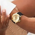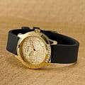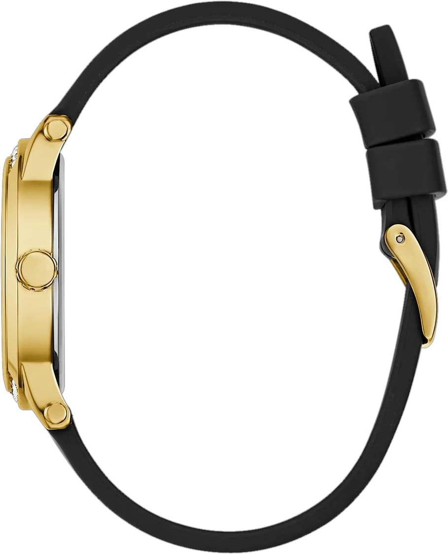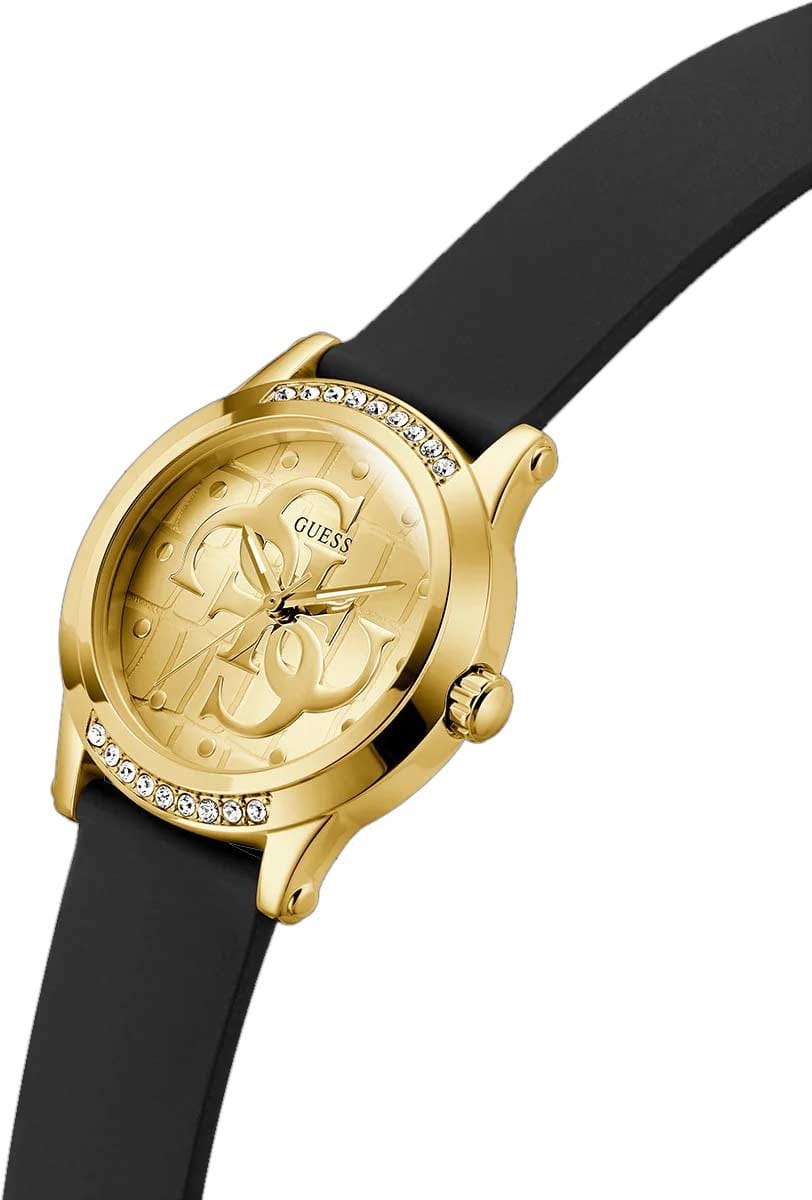 Эти изысканные часы Guess GW0860L1 созданы для уверенных в себе и успешных женщин, стремящихся подчеркнуть свою элегантность и стиль. Часы оснащены надежным кварцевым механизмом, который обеспечивает точность и долговечность. Корпус часов из нержавеющей стали с золотистым IP-покрытиемIP-покрытиеМетод ионного напыления. Демонстрирует повышенную устойчивость к истиранию, окислению и химическим веществам. Под воздействием высокого давления и температуры около 1500°C молекулы металла надёжно соединяются с частицами корпуса часов., а безельБезельВнешний ободок, закрепляющий стекло. В спортивных часах так называется поворотное кольцо с делениями на циферблате, выполняет роль таймера – замеряет отрезки времени на шкале. Неподвижный безель – элемент декора. Однонаправленно вращающийся безель на дайверских часах позволяет фиксировать моменты погружения и выныривания на поверхность. с золотистым IP-покрытиемIP-покрытиеМетод ионного напыления. Демонстрирует повышенную устойчивость к истиранию, окислению и химическим веществам. Под воздействием высокого давления и температуры около 1500°C молекулы металла надёжно соединяются с частицами корпуса часов. украшен кристаллами, придающими модели особый блеск и роскошь. Золотистый циферблат с фактурной поверхностью и метками в виде точек добавляет индивидуальность и изящество. Люминесцентное покрытиеЛюминесцентное покрытиеПозволяет считывать показания времени в темноте. Производители наносят на стрелки, часовые индексы, безель или поверхность циферблата светонакопительный состав, дающий холодное свечение. на стрелках обеспечивает отличную видимость в темноте. Рифленая заводная головка с защитой обеспечивает удобное управление. Силиконовый черный ремешок с классической застежкой гарантирует комфортное ношение и надежную фиксацию на запястье. Часы обладают водозащитой 30WR, что делает их устойчивыми к случайным брызгам. Минеральное стеклоМинеральное стеклоМинеральное стекло представляет собой искусственно выращенный минерал кварца. Такое стекло отличается особой устойчивостью к повреждениям и царапинам. Уступает по некоторым качествам сапфировому стеклу. защищает циферблат от царапин и других повреждений. Эта модель станет идеальным аксессуаром для повседневного использования и особых мероприятий, подчеркивая вашу индивидуальность и неповторимость в любой ситуации.