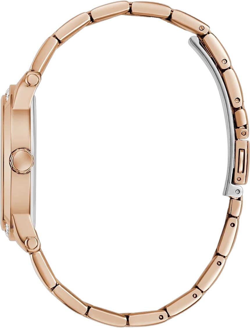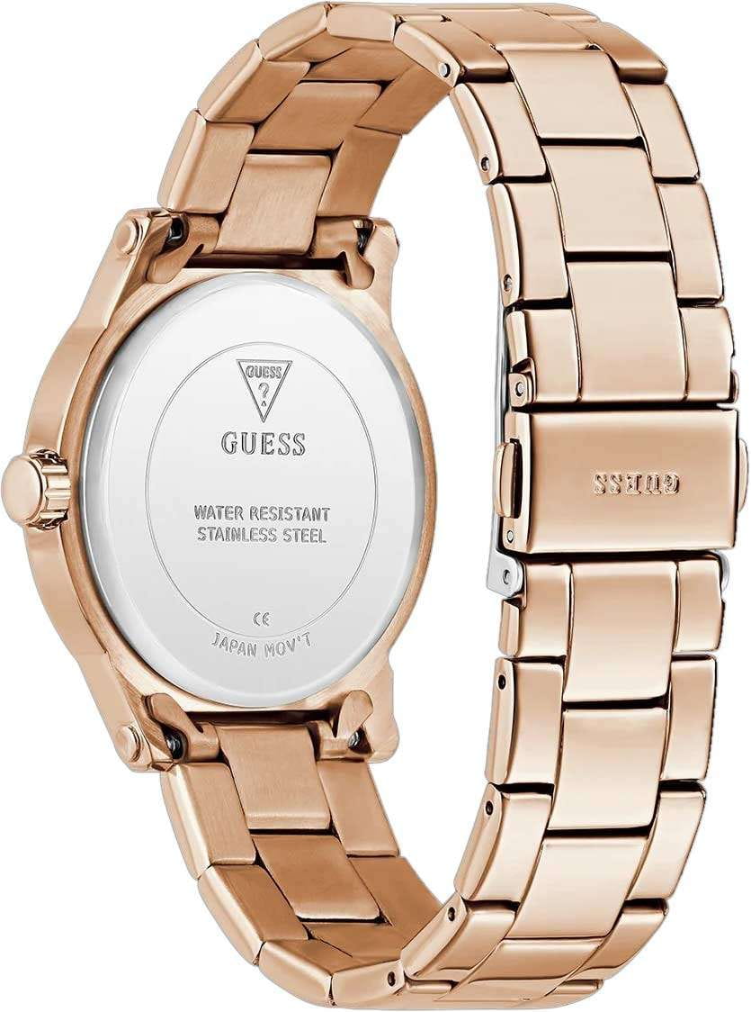 Эти изысканные часы Guess GW0861L3 созданы для уверенных в себе и успешных женщин, стремящихся подчеркнуть свою элегантность и стиль. Часы оснащены надежным кварцевым механизмом, который обеспечивает точность и долговечность. Корпус часов из нержавеющей стали с IP-покрытиемIP-покрытиеМетод ионного напыления. Демонстрирует повышенную устойчивость к истиранию, окислению и химическим веществам. Под воздействием высокого давления и температуры около 1500°C молекулы металла надёжно соединяются с частицами корпуса часов. цвета розового золота, а безельБезельВнешний ободок, закрепляющий стекло. В спортивных часах так называется поворотное кольцо с делениями на циферблате, выполняет роль таймера – замеряет отрезки времени на шкале. Неподвижный безель – элемент декора. Однонаправленно вращающийся безель на дайверских часах позволяет фиксировать моменты погружения и выныривания на поверхность. с IP-покрытиемIP-покрытиеМетод ионного напыления. Демонстрирует повышенную устойчивость к истиранию, окислению и химическим веществам. Под воздействием высокого давления и температуры около 1500°C молекулы металла надёжно соединяются с частицами корпуса часов. цвета розового золота украшен кристаллами, придающими модели особый блеск и роскошь. Золотистый циферблат с фактурной поверхностью и метками в виде точек добавляет индивидуальность и изящество. Люминесцентное покрытиеЛюминесцентное покрытиеПозволяет считывать показания времени в темноте. Производители наносят на стрелки, часовые индексы, безель или поверхность циферблата светонакопительный состав, дающий холодное свечение. на стрелках обеспечивает отличную видимость в темноте. Рифленая заводная головка с защитой обеспечивает удобное управление. Стальной браслет с IP-покрытиемIP-покрытиеМетод ионного напыления. Демонстрирует повышенную устойчивость к истиранию, окислению и химическим веществам. Под воздействием высокого давления и температуры около 1500°C молекулы металла надёжно соединяются с частицами корпуса часов. цвета розового золота и с раскладной застежкойРаскладная застёжкаТакой тип застёжки используется только на браслетах из металла. Она никогда не раскрывается полностью, происходит разделение на 2 и более частей. Раскладывающая застёжка снизит вероятность потери часов к минимуму. гарантирует комфортное ношение и надежную фиксацию на запястье. Часы обладают водозащитой 30WR, что делает их устойчивыми к случайным брызгам. Минеральное стеклоМинеральное стеклоМинеральное стекло представляет собой искусственно выращенный минерал кварца. Такое стекло отличается особой устойчивостью к повреждениям и царапинам. Уступает по некоторым качествам сапфировому стеклу. защищает циферблат от царапин и других повреждений. Эта модель станет идеальным аксессуаром для повседневного использования и особых мероприятий, подчеркивая вашу индивидуальность и неповторимость в любой ситуации.