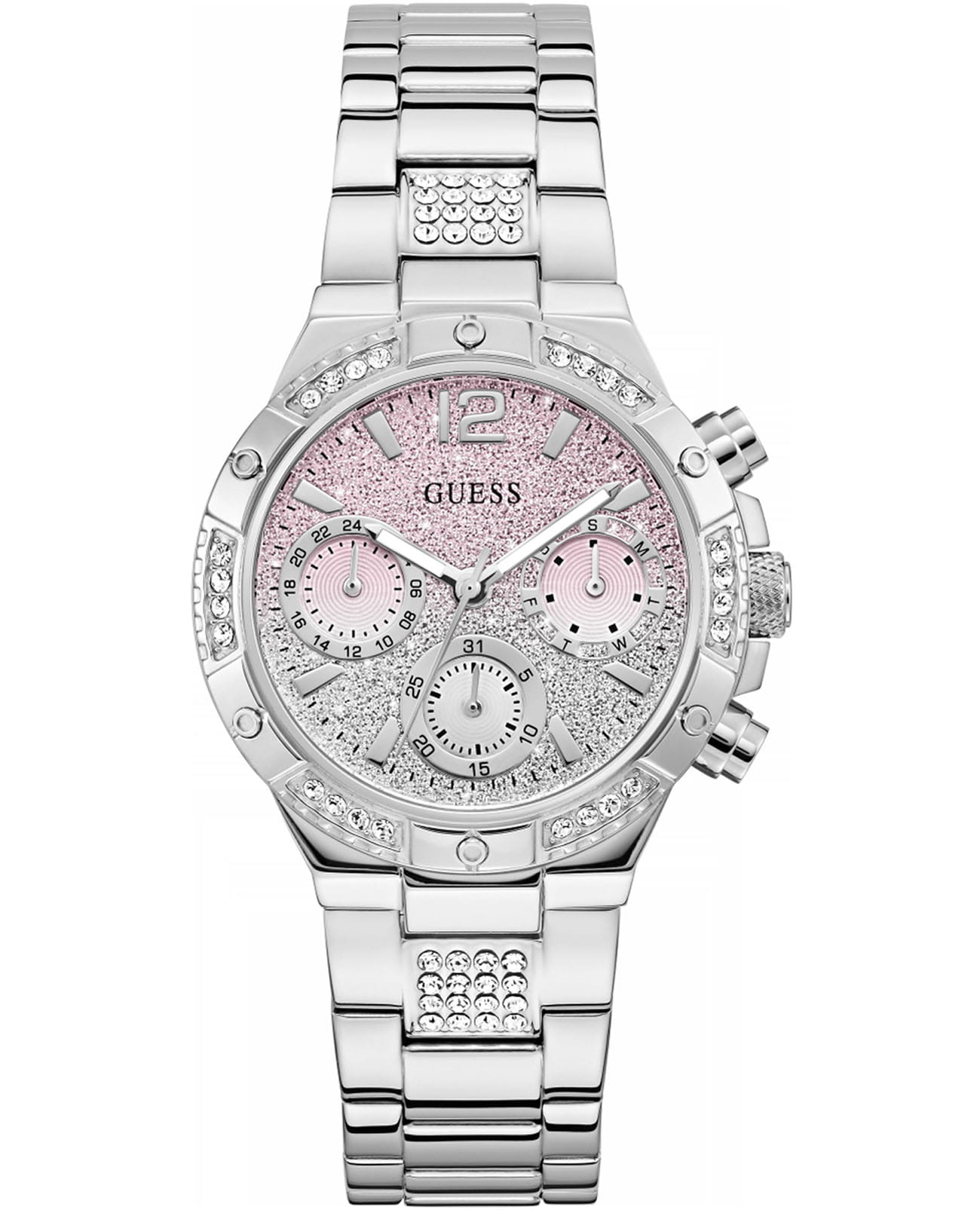 Элегантные женские наручные часы Guess Trend Harlow GW0950L1 сочетают в себе стиль и функциональность. Эти часы оснащены точным кварцевым механизмом, что гарантирует надежность и долговечность. Корпус часов выполнен из прочной нержавеющей стали диаметром 38 мм. БезельБезельВнешний ободок, закрепляющий стекло. В спортивных часах так называется поворотное кольцо с делениями на циферблате, выполняет роль таймера – замеряет отрезки времени на шкале. Неподвижный безель – элемент декора. Однонаправленно вращающийся безель на дайверских часах позволяет фиксировать моменты погружения и выныривания на поверхность. и браслет украшены кристаллами, придающими им роскошный вид. Изысканный циферблат добавляет изделию утонченности и особого шарма. Часы оснащены стальным браслетом с раскладной застежкойРаскладная застёжкаТакой тип застёжки используется только на браслетах из металла. Она никогда не раскрывается полностью, происходит разделение на 2 и более частей. Раскладывающая застёжка снизит вероятность потери часов к минимуму., который обеспечивает комфортное прилегание к запястью и надежную фиксацию. Люминесцентное покрытиеЛюминесцентное покрытиеПозволяет считывать показания времени в темноте. Производители наносят на стрелки, часовые индексы, безель или поверхность циферблата светонакопительный состав, дающий холодное свечение. на стрелках обеспечивает отличную видимость в темноте. Минеральное стеклоМинеральное стеклоМинеральное стекло представляет собой искусственно выращенный минерал кварца. Такое стекло отличается особой устойчивостью к повреждениям и царапинам. Уступает по некоторым качествам сапфировому стеклу. защищает циферблат от царапин и повреждений, сохраняя его безупречный вид. Водозащита 50WR гарантирует защиту от случайных брызг и дождя, что делает эти часы практичным аксессуаром для повседневной жизни.