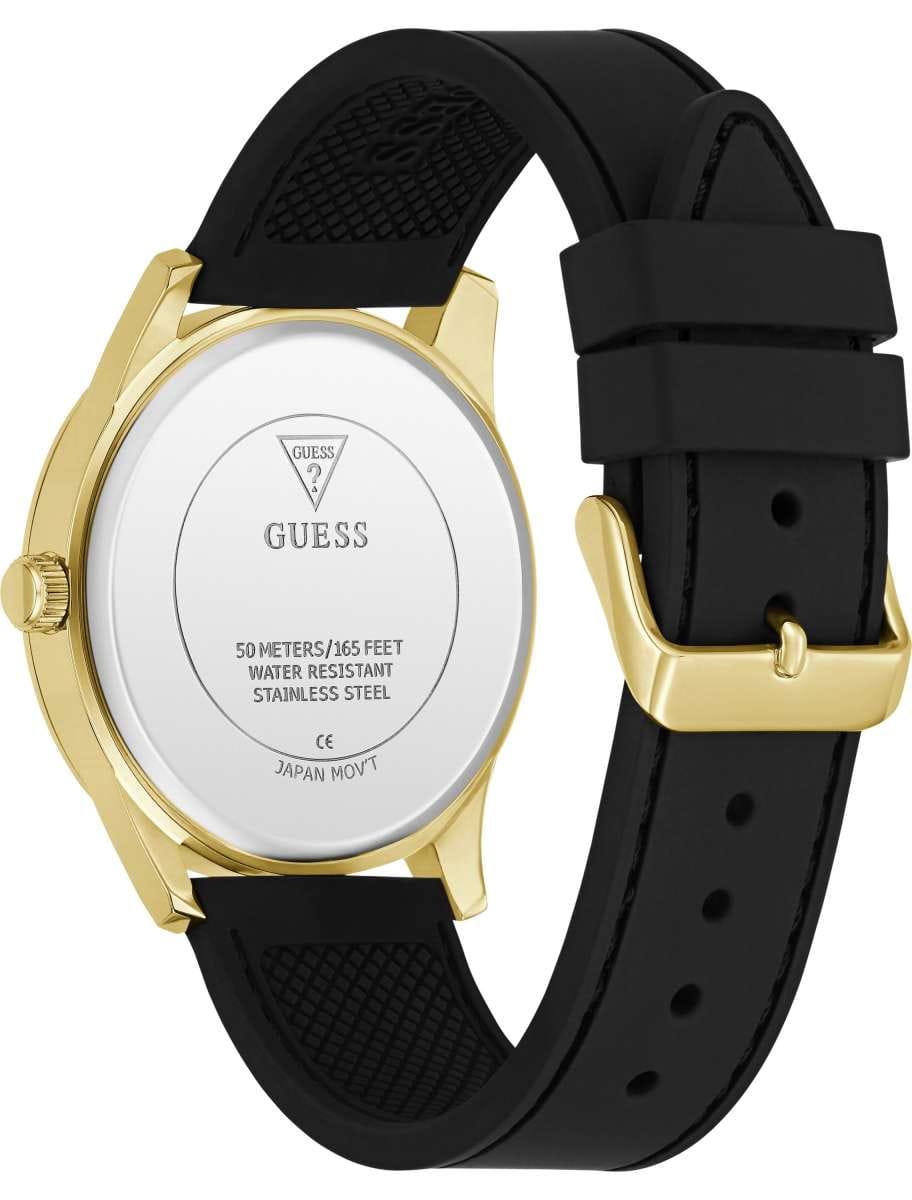 Часы Guess Trend Clark GW0957G2 — это изысканный аксессуар, который добавит вашему современному образу нотку гламура и элегантности. Часы оснащены надежным кварцевым механизмом, который обеспечивает точность и долговечность. Круглый стальной корпус с золотистым IP-покрытиемIP-покрытиеМетод ионного напыления. Демонстрирует повышенную устойчивость к истиранию, окислению и химическим веществам. Под воздействием высокого давления и температуры около 1500°C молекулы металла надёжно соединяются с частицами корпуса часов. и полированной поверхностью диаметром 42 мм придает часам стильный и современный вид. Золотистый циферблат создает утонченное и изысканное впечатление. Люминесцентное покрытиеЛюминесцентное покрытиеПозволяет считывать показания времени в темноте. Производители наносят на стрелки, часовые индексы, безель или поверхность циферблата светонакопительный состав, дающий холодное свечение. на стрелках обеспечивает отличную видимость в темноте. Часы оснащены рифленой заводной головкой для удобного управления. Кожаный черный ремешок с классической застежкой обеспечивает надежную фиксацию часов на руке и комфорт в ношении. Водозащита 50WR позволит мыть руки или гулять под дождем, не опасаясь того, что в корпус попадет вода, а минеральное стеклоМинеральное стеклоМинеральное стекло представляет собой искусственно выращенный минерал кварца. Такое стекло отличается особой устойчивостью к повреждениям и царапинам. Уступает по некоторым качествам сапфировому стеклу. защищает циферблат от царапин. Эта модель станет идеальным аксессуаром для ежедневного использования и особых мероприятий, подчеркивая вашу индивидуальность и стиль.