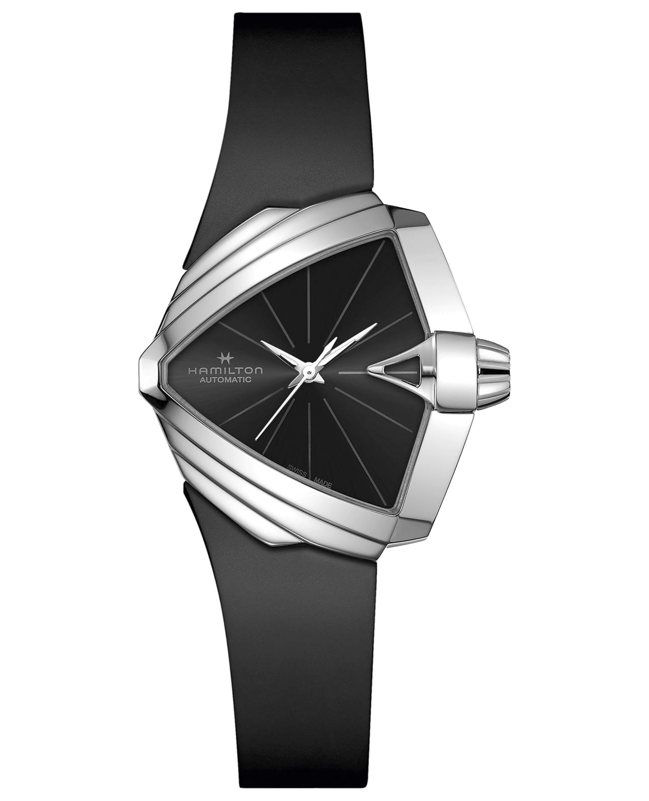 Женские швейцарские механические часы с автоподзаводом Hamilton Ventura S Auto H24105330, автоматический механизм с высокой точностью. Сапфировое стеклоСапфировое стеклоПрочный и надёжный материал из кристалла сапфира синтетического происхождения, характеризующийся особой твёрдостью и устойчивостью к царапинам и повреждениям. устойчивое к появлению царапин, обладающее высокой прозрачностью. Класс водозащиты: 50 метров, позволит защитить корпус от случайных брызг или капель дождя. Корпус часов изготовлен из нержавеющей стали. Стрелки с люминесцентным покрытиемЛюминесцентное покрытиеПозволяет считывать показания времени в темноте. Производители наносят на стрелки, часовые индексы, безель или поверхность циферблата светонакопительный состав, дающий холодное свечение.. Каучуковый ремешок.