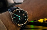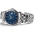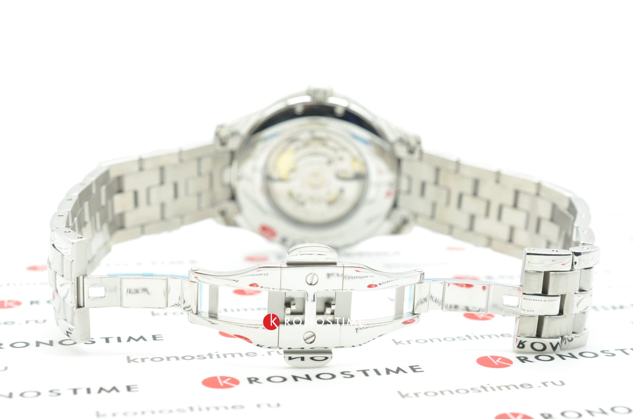Часы прекрасно сочетаются с синим кожаным ремешком и легко носятся на руке, практически не чувствуешь их, что очень удобно. Модель на браслете имеет вес, смотрится более привлекательно за счет полированных частей звеньев, отмечу хорошую застежку, вообще браслет серьезный, соединения шпильками и втулками. Толщина часов около 11мм, однако на руке кажется не более 9 мм за счет скосов на задней крышке довольно тонкие, не цепляются за рукава, хорошо выполнена защита компактной и в то же время удобной заводной головки. Часы имеют идеальный размер для запястья среднего размера. Задняя крышка с окошком, интересно понаблюдать за работой механизма.