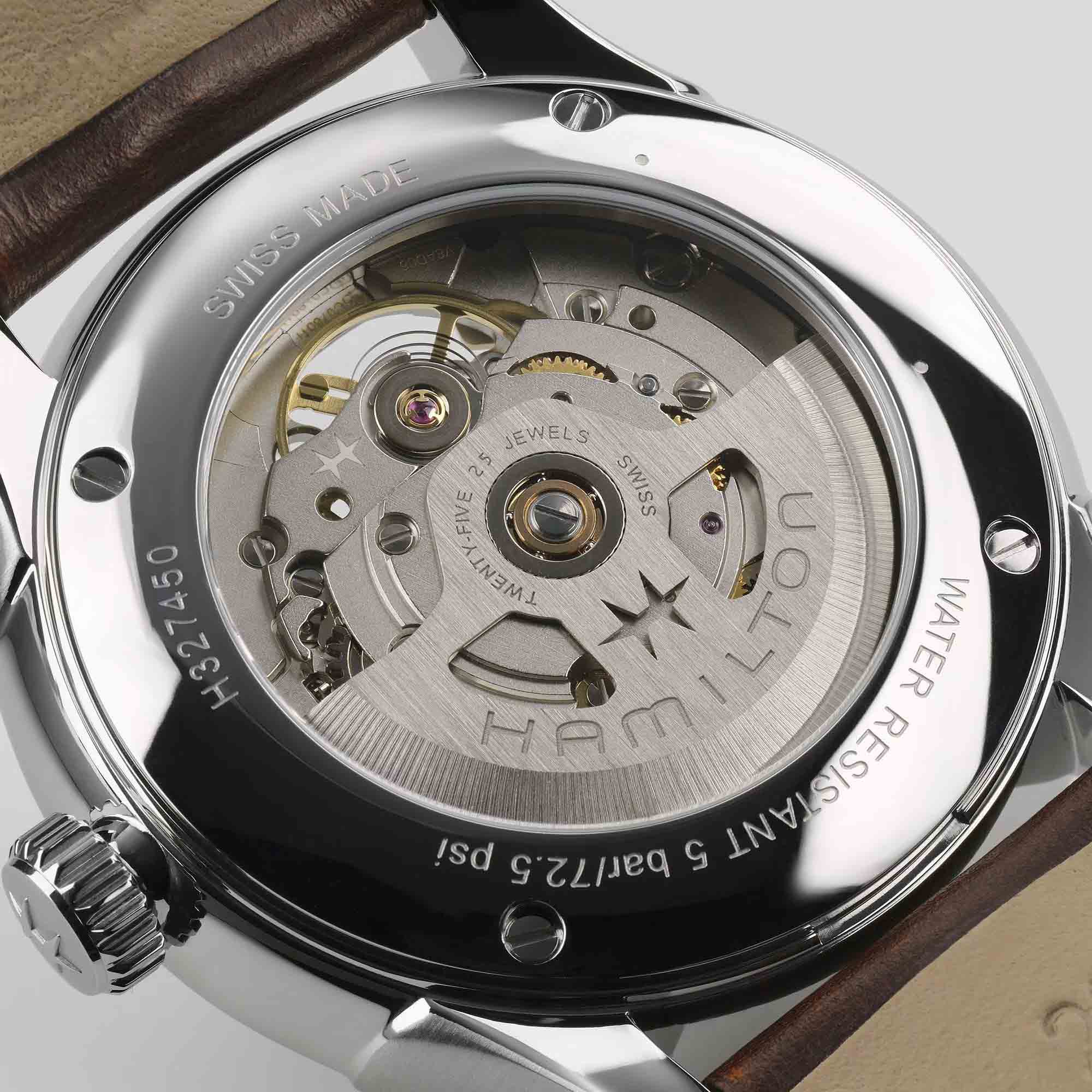 Мужские механические швейцарские часы Hamilton Jazzmaster Open Heart Auto H32675570, механический механизм (автоматический калибр) с высокой точностью. Сапфировое стеклоСапфировое стеклоПрочный и надёжный материал из кристалла сапфира синтетического происхождения, характеризующийся особой твёрдостью и устойчивостью к царапинам и повреждениям. устойчивое к появлению царапин, обладающее высокой прозрачностью. Класс водозащиты: 50 метров, позволит защитить корпус от случайных брызг или капель дождя. Корпус часов изготовлен из нержавеющей стали. Часы оснащены спиралью баланса из сплава Nivachron™Nivachron™Специально разработанный инновационный сплав Nivachron™ повышает устойчивость часов к воздействию магнитных полей..