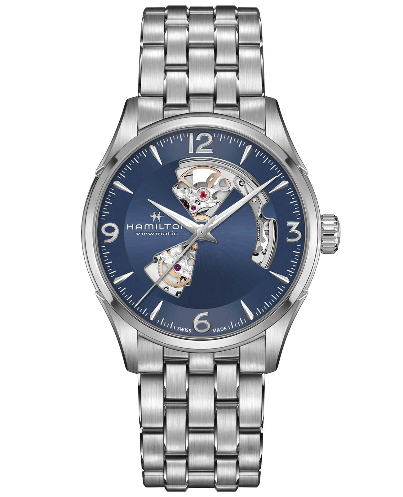 Мужские механические швейцарские часы Hamilton Jazzmaster Open Heart Auto H32705141, автоматический механизм с высокой точностью. Сапфировое стеклоСапфировое стеклоПрочный и надёжный материал из кристалла сапфира синтетического происхождения, характеризующийся особой твёрдостью и устойчивостью к царапинам и повреждениям. устойчивое к появлению царапин, обладающее высокой прозрачностью. Класс водозащиты: 100 метров, позволит плавать, нырять и заниматься другими водными видами спорта. Корпус часов изготовлен из стали. Стальной браслет на раскладной застёжкеРаскладная застёжкаТакой тип застёжки используется только на браслетах из металла. Она никогда не раскрывается полностью, происходит разделение на 2 и более частей. Раскладывающая застёжка снизит вероятность потери часов к минимуму..