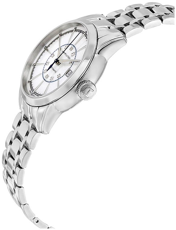 Женские швейцарские часы с бриллиантами Hamilton American Classic RailRoad Lady Auto H40405191, механический механизм (автоматический калибр) с высокой точностью. Сапфировое стекло устойчивое к появлению царапин, обладающее высокой прозрачностью. Класс водозащиты: 50 метров, позволит защитить корпус от случайных брызг или капель дождя. Корпус часов изготовлен из стали, серебристого цвета.