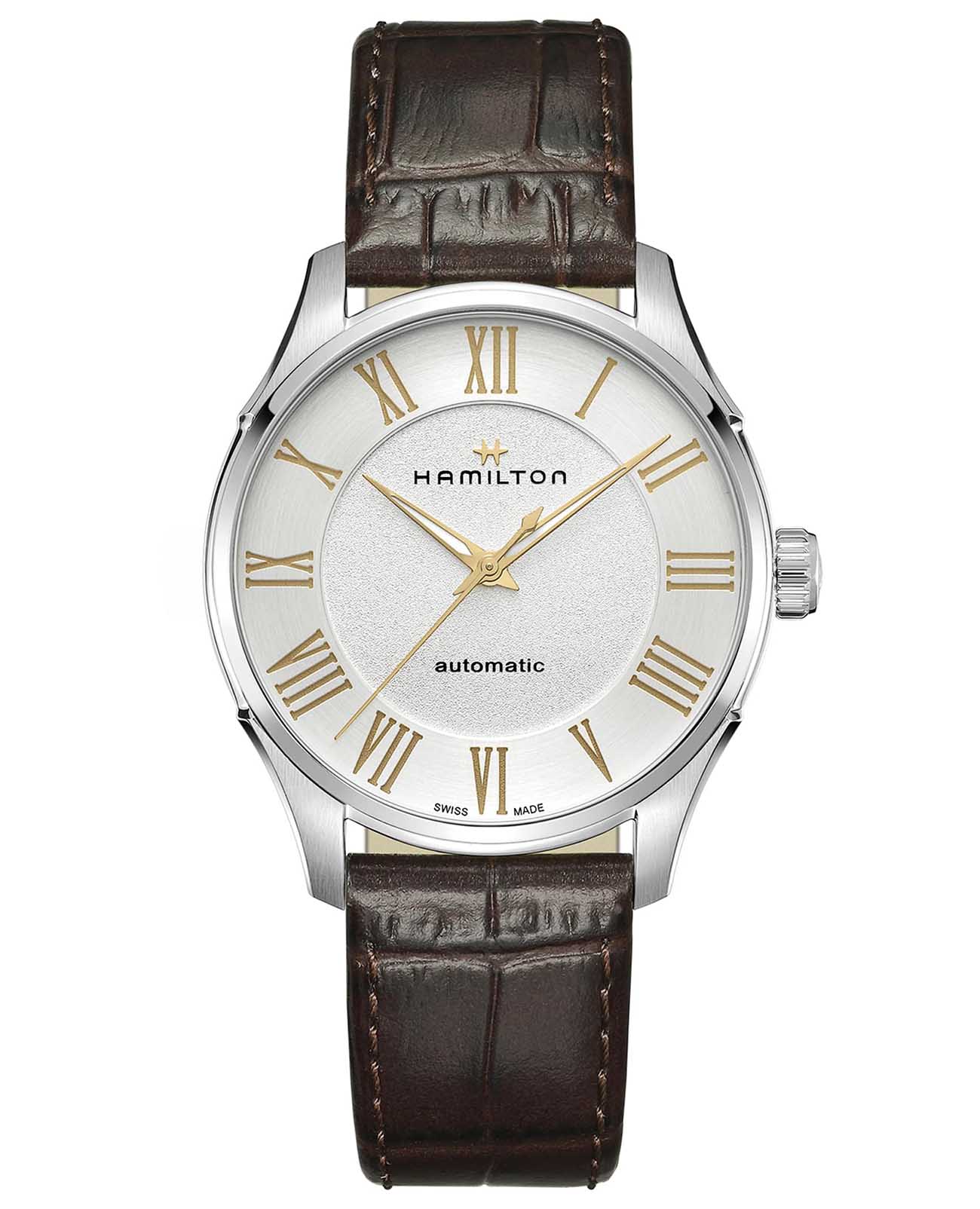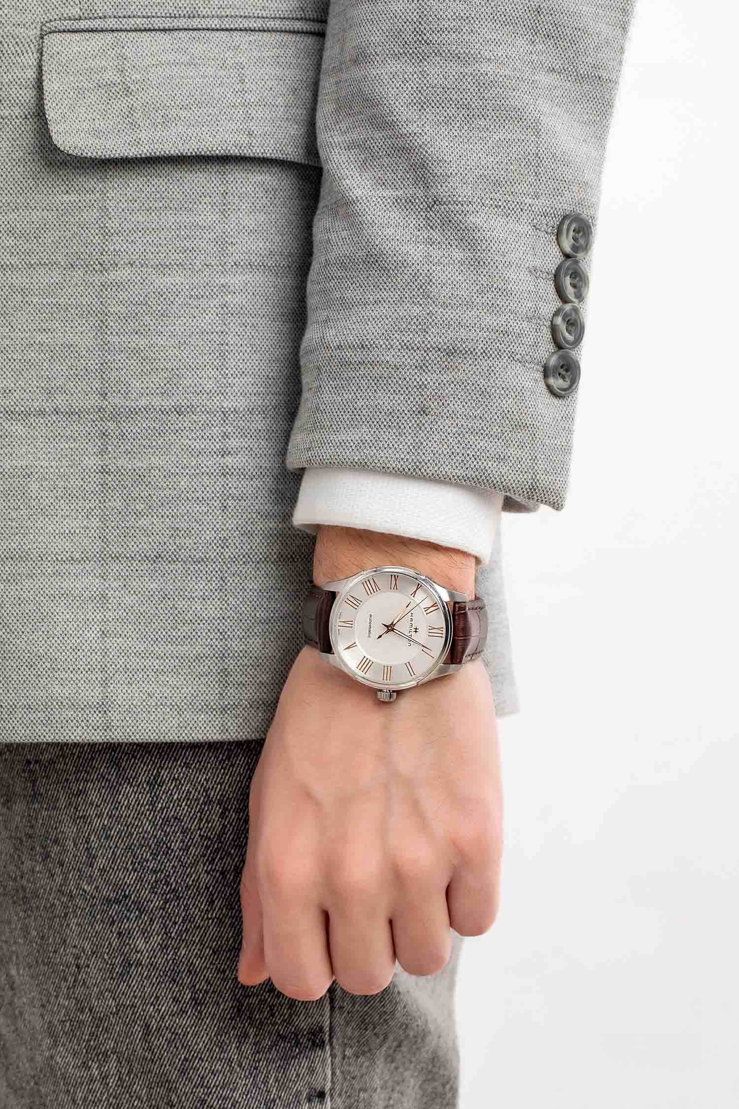 Традиции сочетаются с инновациями в 40-миллиметровом Jazzmaster Automatic. Римские цифры на циферблате придают ему особый стиль, а механизм H-10 с антимагнитной балансирной пружиной Nivachron™Nivachron™Специально разработанный инновационный сплав Nivachron™ повышает устойчивость часов к воздействию магнитных полей. гарантирует безупречную точность. С этими высококачественными часами, предлагаемыми с различными комбинациями циферблата и ремешка, возможно все. Механический механизм (автоматический калибр) с высокой точностью. Сапфировое стеклоСапфировое стеклоПрочный и надёжный материал из кристалла сапфира синтетического происхождения, характеризующийся особой твёрдостью и устойчивостью к царапинам и повреждениям. устойчивое к появлению царапин, обладающее высокой прозрачностью. Люминесцентное покрытиеЛюминесцентное покрытиеПозволяет считывать показания времени в темноте. Производители наносят на стрелки, часовые индексы, безель или поверхность циферблата светонакопительный состав, дающий холодное свечение. на стрелках. Класс водозащиты: 50 метров, позволит защитить корпус от случайных брызг или капель дождя. Корпус часов изготовлен из нержавеющей стали. Кожаный ремешок с классической застежкой.