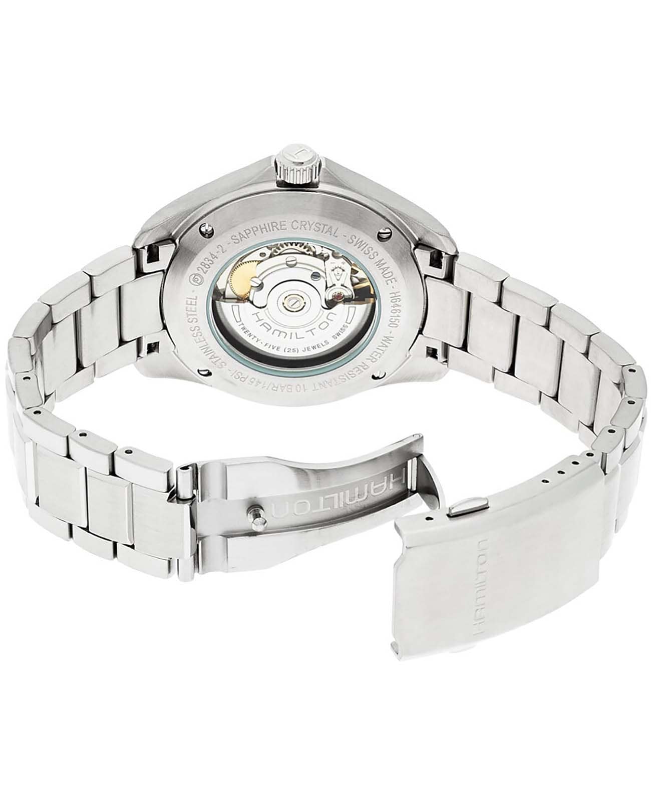 Мужские механические швейцарские часы Hamilton Khaki Aviation Pilot Day Date Auto H64615135, автоматический механизм с высокой точностью. Сапфировое стеклоСапфировое стеклоПрочный и надёжный материал из кристалла сапфира синтетического происхождения, характеризующийся особой твёрдостью и устойчивостью к царапинам и повреждениям. устойчивое к появлению царапин, обладающее высокой прозрачностью. Класс водозащиты: 100 метров, позволит плавать, нырять и заниматься другими водными видами спорта. Корпус часов изготовлен из стали. Стальной браслет на раскладной застёжкеРаскладная застёжкаТакой тип застёжки используется только на браслетах из металла. Она никогда не раскрывается полностью, происходит разделение на 2 и более частей. Раскладывающая застёжка снизит вероятность потери часов к минимуму..