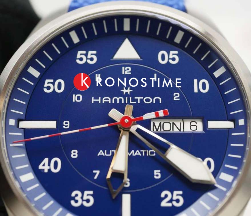 Часы специальной серии Khaki Aviation Pilot посвящены сотрудничеству со швейцарской спасательной вертолетной службой Air-Glaciers. Модель в гипоаллергенном легком корпусе из титана диаметром 42 мм, дополненная синим циферблатом, соединяет долговечность и комфорт. Готовые к любым испытаниям часы сочетают в себе культовый автоматический механизм H-30, 80-часовой запас хода и ремешок с кожаной подкладкой, внешней частью из нейлона и застежкой Velcro, обеспечивающий возможность персонализации. Изделие поставляется в специальной упаковке Pelicase с запасным сменным ремешком из коричневой замши.