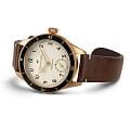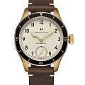 Мужские стильные швейцарские часы Hamilton Khaki Aviation Pilot Pioneer Mechanical 43mm H76709510. Корпус из бронзы диаметром 43 мм с изысканным дизайном и увеличенной толщиной 13 мм подчеркивает элегантность модели, поворотный безельБезельВнешний ободок, закрепляющий стекло. В спортивных часах так называется поворотное кольцо с делениями на циферблате, выполняет роль таймера – замеряет отрезки времени на шкале. Неподвижный безель – элемент декора. Однонаправленно вращающийся безель на дайверских часах позволяет фиксировать моменты погружения и выныривания на поверхность. изготовлен из титана, а сапфировое стеклоСапфировое стеклоПрочный и надёжный материал из кристалла сапфира синтетического происхождения, характеризующийся особой твёрдостью и устойчивостью к царапинам и повреждениям. с антибликовым покрытиемАнтибликовое покрытиеСлой оксида металла в 0,13-0,3 микрон, благодаря которому стекло часов не бликует и не отражает свет. Антибликовое покрытие уменьшает отражение света в 10 раз, обеспечивая отличную читаемость показателей циферблата. обеспечивает превосходную читаемость лаконичного циферблата со стрелками с люминесцентным покрытиемЛюминесцентное покрытиеПозволяет считывать показания времени в темноте. Производители наносят на стрелки, часовые индексы, безель или поверхность циферблата светонакопительный состав, дающий холодное свечение. Super-LumiNova®. Механизм с ручным заводом ETA 6498-1, обеспечивающей запас хода 50 часов. Изысканный ремешок выполнен из кожи со стандартной застежкой, гарантирующей комфортное ношение и безопасность. Водонепроницаемость часов достигает 10 атмосфер (100 метров), делающая их подходящими для повседневного использования и активного отдыха. Это сочетание высокой прочности, точности и изысканного дизайна для уверенных в себе мужчин.