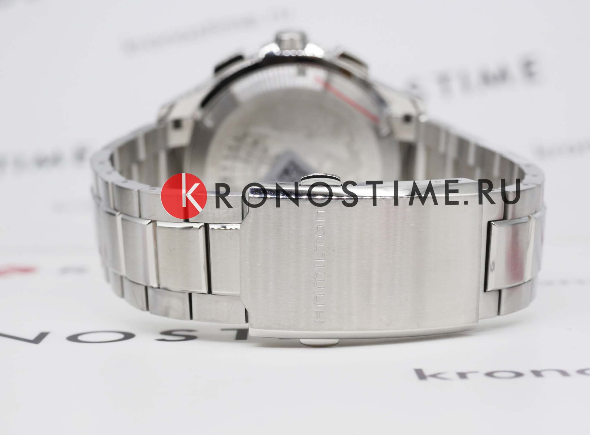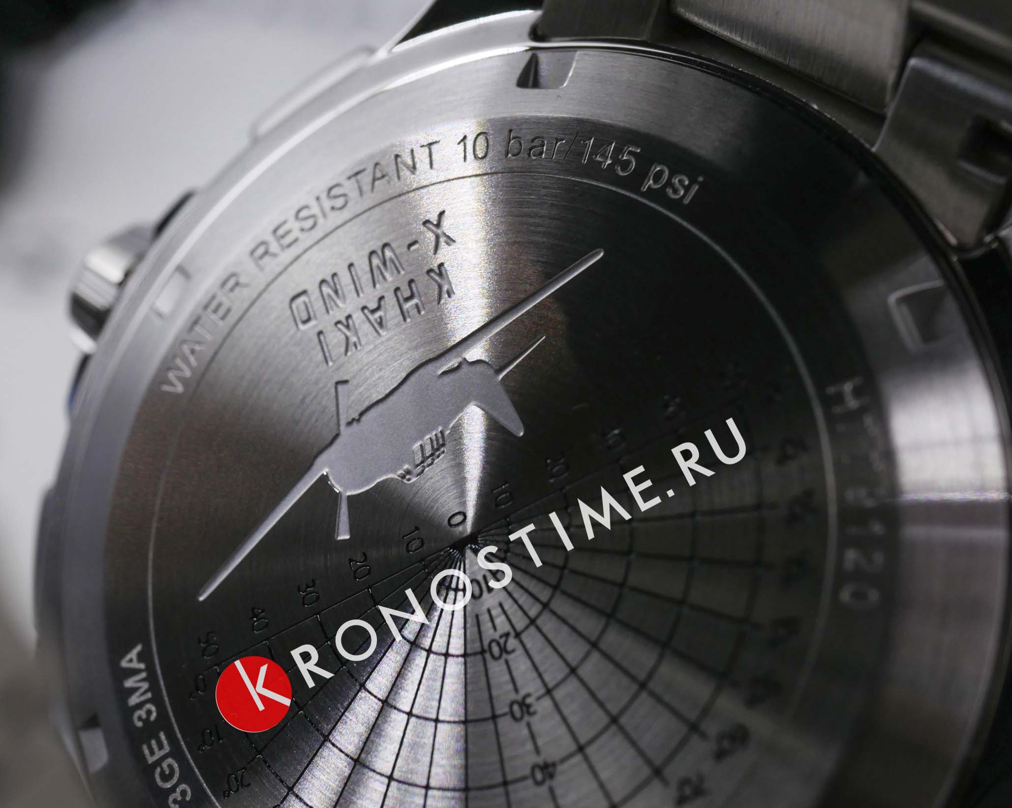 Мужские часы-хронографХронографФункция позволяет измерять отрезки времени с особой точностью: часы, минуты, секунды. Верным признаком хронографа является наличие на циферблате 3 дополнительных окошек-счётчиков. Hamilton Khaki Aviation X-Wind GMT Chrono Quartz H77912135 с надёжным кварцевым механизмом. Корпус часов изготовлен из нержавеющей стали. Стальной браслет на раскладной застёжкеРаскладная застёжкаТакой тип застёжки используется только на браслетах из металла. Она никогда не раскрывается полностью, происходит разделение на 2 и более частей. Раскладывающая застёжка снизит вероятность потери часов к минимуму.. Сапфировое стеклоСапфировое стеклоПрочный и надёжный материал из кристалла сапфира синтетического происхождения, характеризующийся особой твёрдостью и устойчивостью к царапинам и повреждениям. с антибликовым покрытием. Второй часовой поясВторой часовой поясФункция, позволяющая отображать время двух часовых поясов одновременно., вычисление поправки на ветер, окошко даты находится в положении 3 часа. Стрелки и метки с люминесцентным покрытиемЛюминесцентное покрытиеПозволяет считывать показания времени в темноте. Производители наносят на стрелки, часовые индексы, безель или поверхность циферблата светонакопительный состав, дающий холодное свечение.. Уровень влагозащиты: 100 метров, позволит плавать, нырять и заниматься другими водными видами спорта.