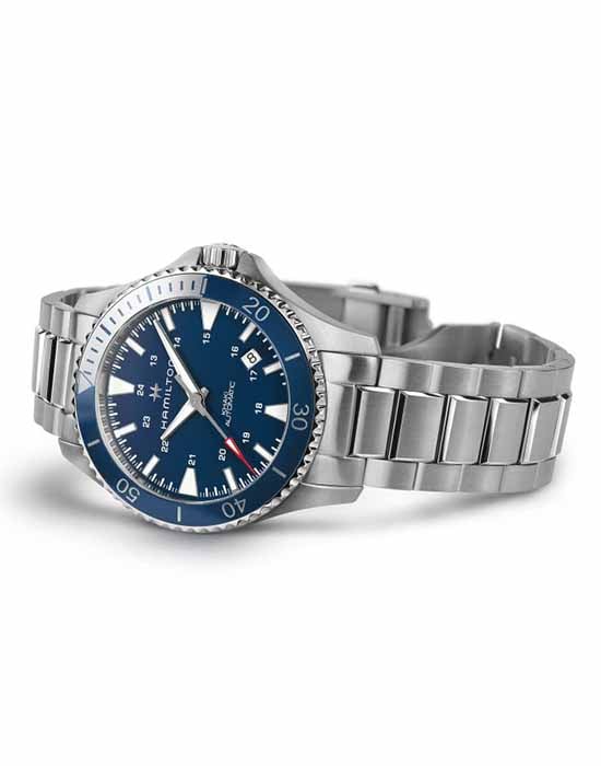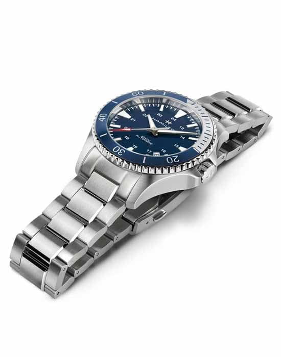 Мужские наручные часы Hamilton Khaki Navy Scuba Auto H82315131 сочетают в себе классический дизайн и надежность современных технологий. Модель обладает круглым корпусом диаметром 40 мм, изготовленным из нержавеющей стали 316L, что обеспечивает высокую устойчивость к внешним воздействиям. Корпус оснащен сапфировым стекломСапфировое стеклоПрочный и надёжный материал из кристалла сапфира синтетического происхождения, характеризующийся особой твёрдостью и устойчивостью к царапинам и повреждениям., защищающим циферблат от царапин и обеспечивающим антибликовый эффект. Часы работают на автоматическом калибре H-10 с запасом хода до 80 часов, что гарантирует точное время без необходимости подзаводки. Циферблат украшен индексами и стрелками с люминесцентным покрытиемЛюминесцентное покрытиеПозволяет считывать показания времени в темноте. Производители наносят на стрелки, часовые индексы, безель или поверхность циферблата светонакопительный состав, дающий холодное свечение., обеспечивающим видимость в темноте. Водонепроницаемость часов достигает 10 атмосфер (100 метров), что позволяет использовать их во время плавания и других водных видов спорта. Браслет выполнен из нержавеющей стали с раскладной застежкойРаскладной замокДанный вариант застежки используется только на часах с металлическим браслетом. Отличительная особенность такого крепления в том, что длина браслета становится универсальной и вы можете самостоятельно отрегулировать нужный вам размер – застежка просто двигается по браслету часов., гарантирующей комфортное ношение и безопасность