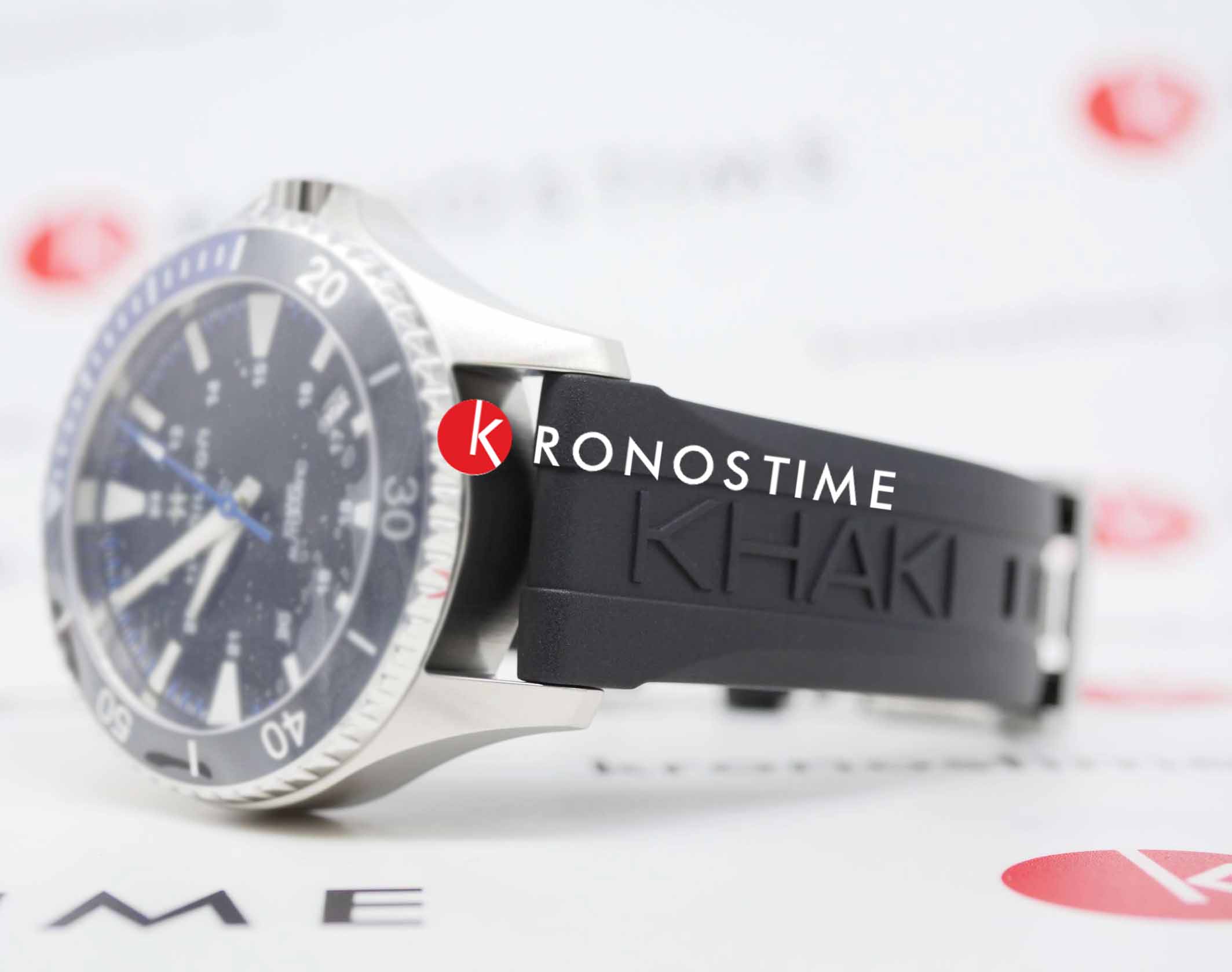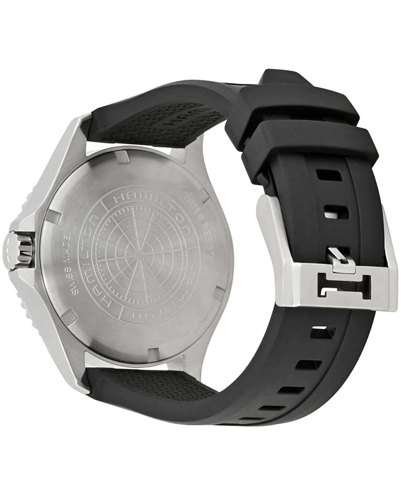 Мужские наручные часы Hamilton Khaki Navy Scuba Auto 40MM H82315331 с автоматическим механизмом Н-10. Корпус часов выполнен из нержавеющей стали. Сапфировое стеклоСапфировое стеклоПрочный и надёжный материал из кристалла сапфира синтетического происхождения, характеризующийся особой твёрдостью и устойчивостью к царапинам и повреждениям. с антибликовым покрытием. БезельБезельВнешний ободок, закрепляющий стекло. В спортивных часах так называется поворотное кольцо с делениями на циферблате, выполняет роль таймера – замеряет отрезки времени на шкале. Неподвижный безель – элемент декора. Однонаправленно вращающийся безель на дайверских часах позволяет фиксировать моменты погружения и выныривания на поверхность. с PVD-покрытиемPVDУльтратонкое покрытие наносится в технике вакуумного напыления, сочетает в себе нитрид титана особой прочности со слоем золота или оксида хрома. Несёт в себе декоративную или защитную функцию.. Практичный браслет из каучука на стандартной застёжке. Уровень влагозащиты: 100 метров, позволит плавать, нырять и заниматься другими водными видами спорта. Стрелки и метки с люминесцентным покрытиемЛюминесцентное покрытиеПозволяет считывать показания времени в темноте. Производители наносят на стрелки, часовые индексы, безель или поверхность циферблата светонакопительный состав, дающий холодное свечение.. Окошко даты находится в положении между 4 и 5 часов. 12 и 24-часовой формат времени.